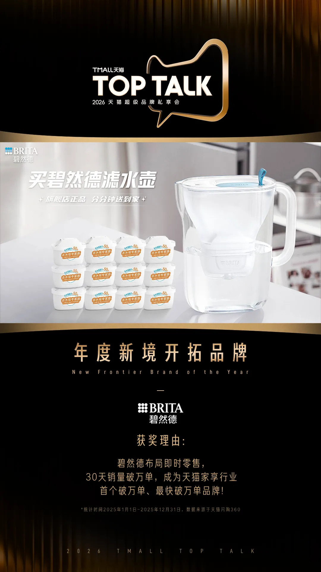 携手碧然德,天猫给出了另一种解法,重构净水消费体验。碧然德创新接入淘宝闪购,借力天猫大促节点完成前期造势与种草,以全国覆盖、极速履约的「闪电焕芯」服务焕新家庭饮水场景,为大众带来即时纯净饮水体验,30 天内淘宝闪购销量破万。