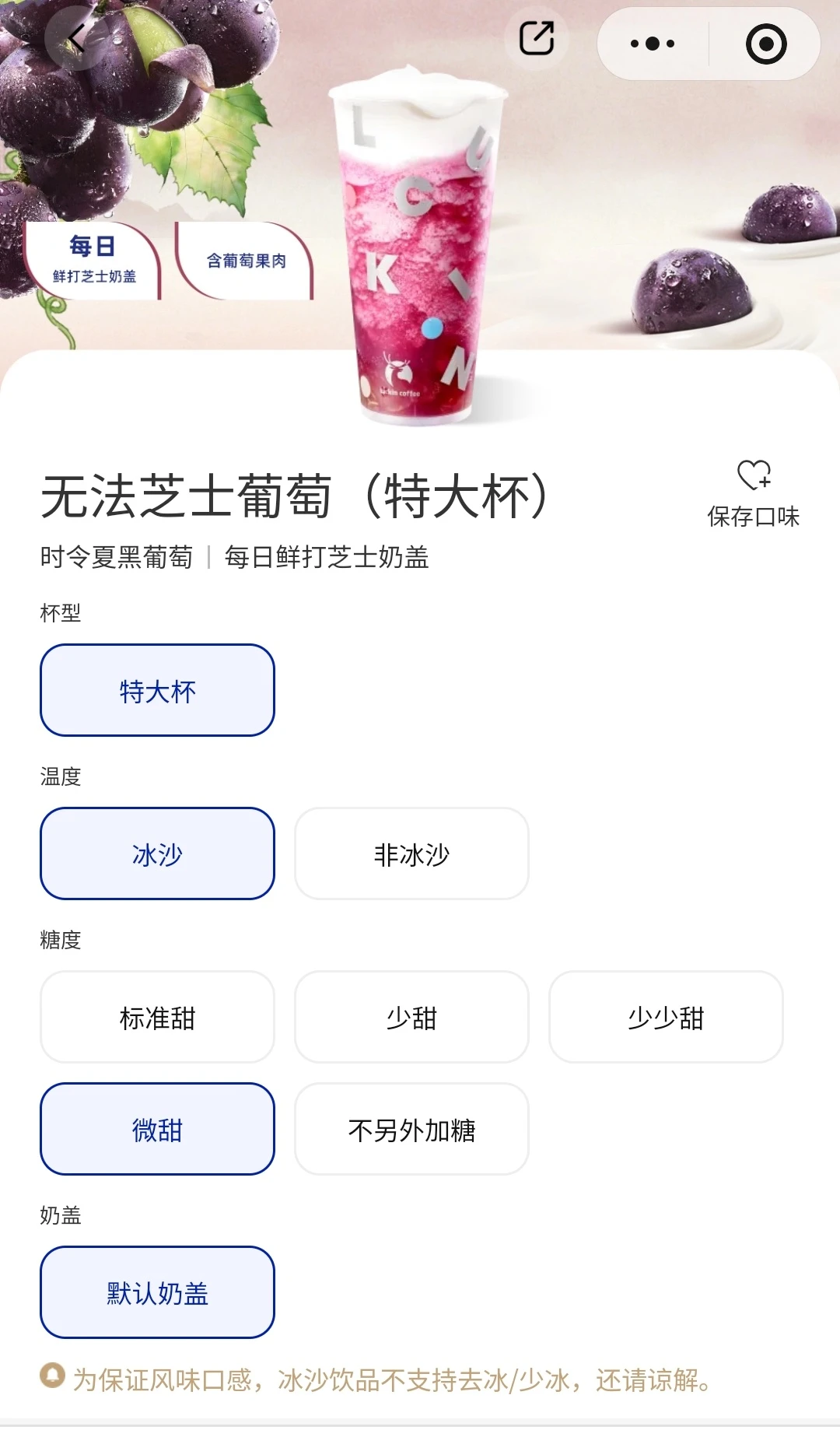 不光联名玩得溜,瑞幸的「听劝」属性也再次上线。有网友发现,「雪酪芝士葡萄」的发音与陶喆《普通朋友》里的歌词「无法只是朋友」高度相似,就建议将这款饮品改名为「无法芝士葡萄」。品牌二话不说,直接更名一周,这个小插曲也为联名再添了一把热度。