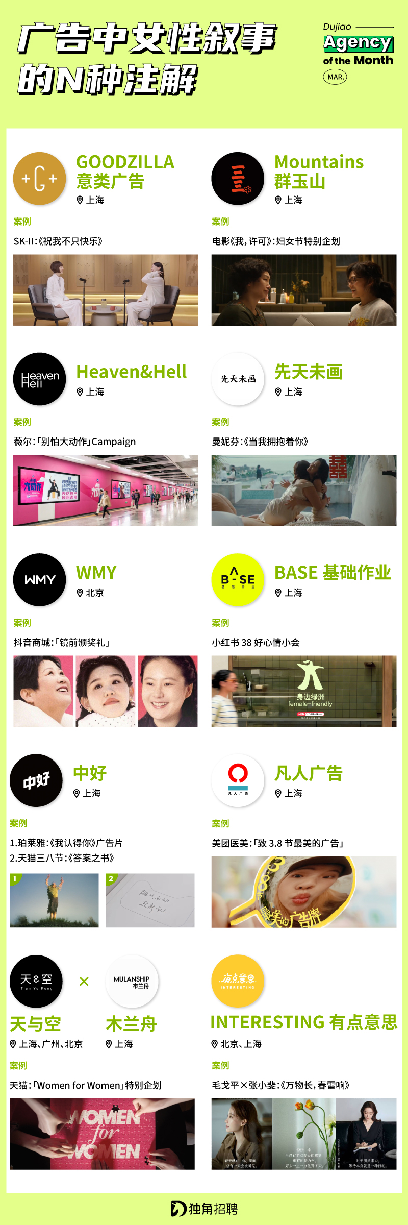 三月属于春天,也属于女性。回看近年品牌们的女性叙事发声,不论是表现形式还是内容主题,都呈现出更加丰富且深刻的趋势。因此本月 Agency of the Month 盘点,我们着重关注了一些优秀妇女节营销案例背后的代理商们,一起看看他们交出了怎样的答卷。