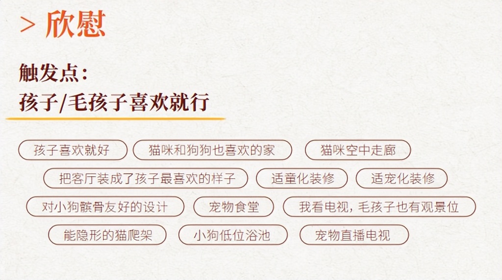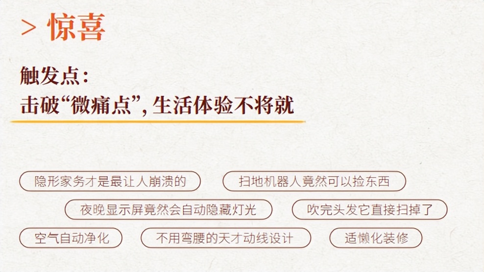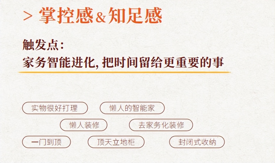 例如,「欣赏感」代表着家生活审美关注重点的迁移,从「第一眼的好看」转向「经得起反复品味的质感之美」;「掌控感&知足感」来自家务智能的持续进化,把时间留给更重要的事;「惊喜感」则源于对愈发细微生活痛点的精准击破,让体验不再将就;「欣慰」的触发来自孩子与毛孩子的喜欢,在全员平权的家庭生态之下,他们的情绪感受也被认真纳入家庭日常的设计与决策之中等,六大触发点共同勾勒出了当下家生活情绪变化的轮廓。