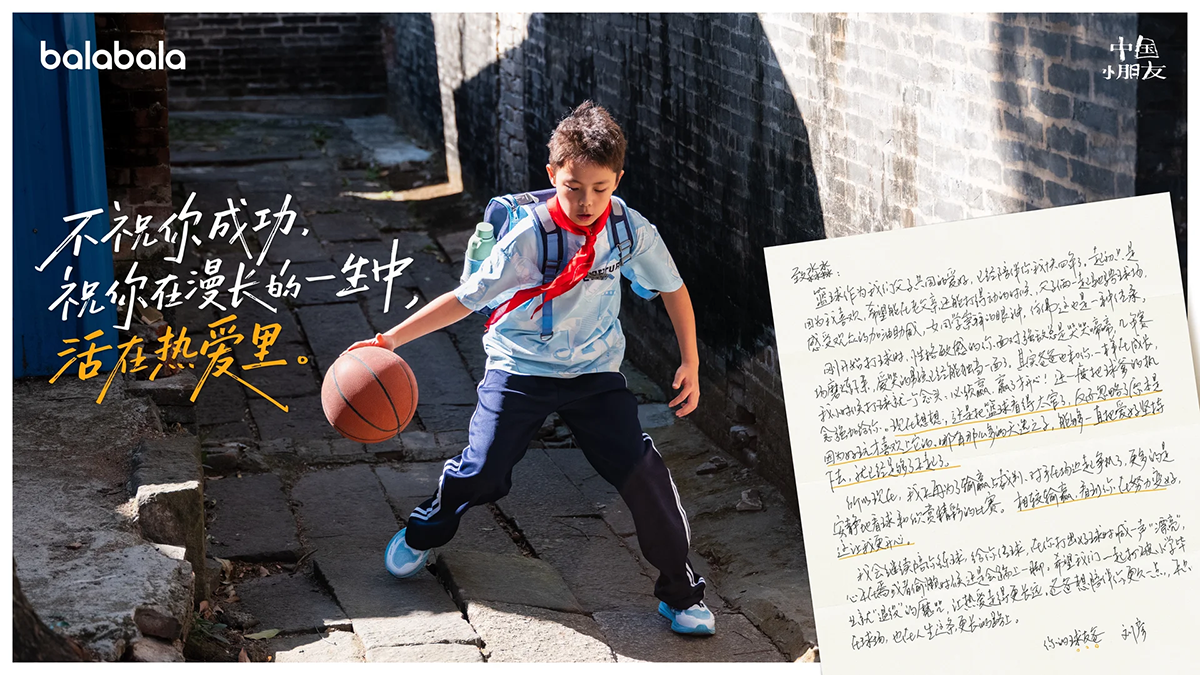 在巴拉巴拉眼里,所有大朋友,也都是小朋友,两支影片始终都是与不同年龄层的「中国小朋友」进行对话,让他们都能产生共鸣。在今年的影片,品牌不仅在片尾同时鸣谢了参与拍摄的小朋友与支持这份热爱的大朋友,还邀请父母、教练写下一封封充满真情的家书。这些信件,搭配着孩子极富感染力的画面,也被品牌投放在线下,鼓励着更多大朋友陪伴和守护孩子的热爱。
