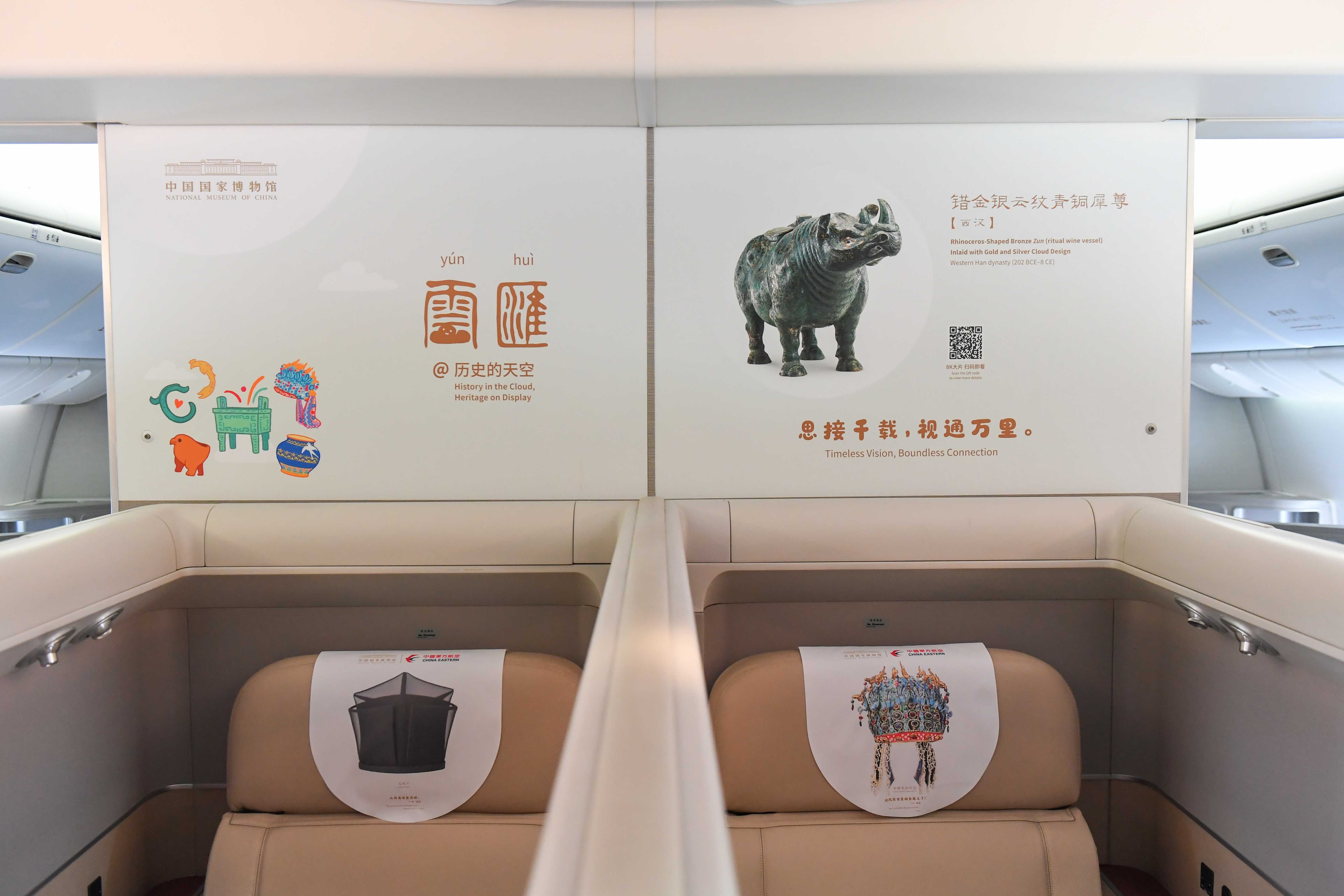 不同于常规的机舱布置,这架飞机被视作国家博物馆的「第 49 个展厅」,文物图案被延伸到舱壁、行李架、桌板等细节里,按时间脉络铺陈出中华文明的演进。而豆包提供的 AI 识文物功能则把博物馆的「讲解员」带上了云端。乘客只需打开豆包拍照功能扫描机内文物图像,国博数智人、航班虚拟机长艾雯雯便会实时进行语音讲解,带领游客走进国博「古代中国」基本陈列的数字孪生空间,实现一次真正意义上的「高空逛博物馆」。