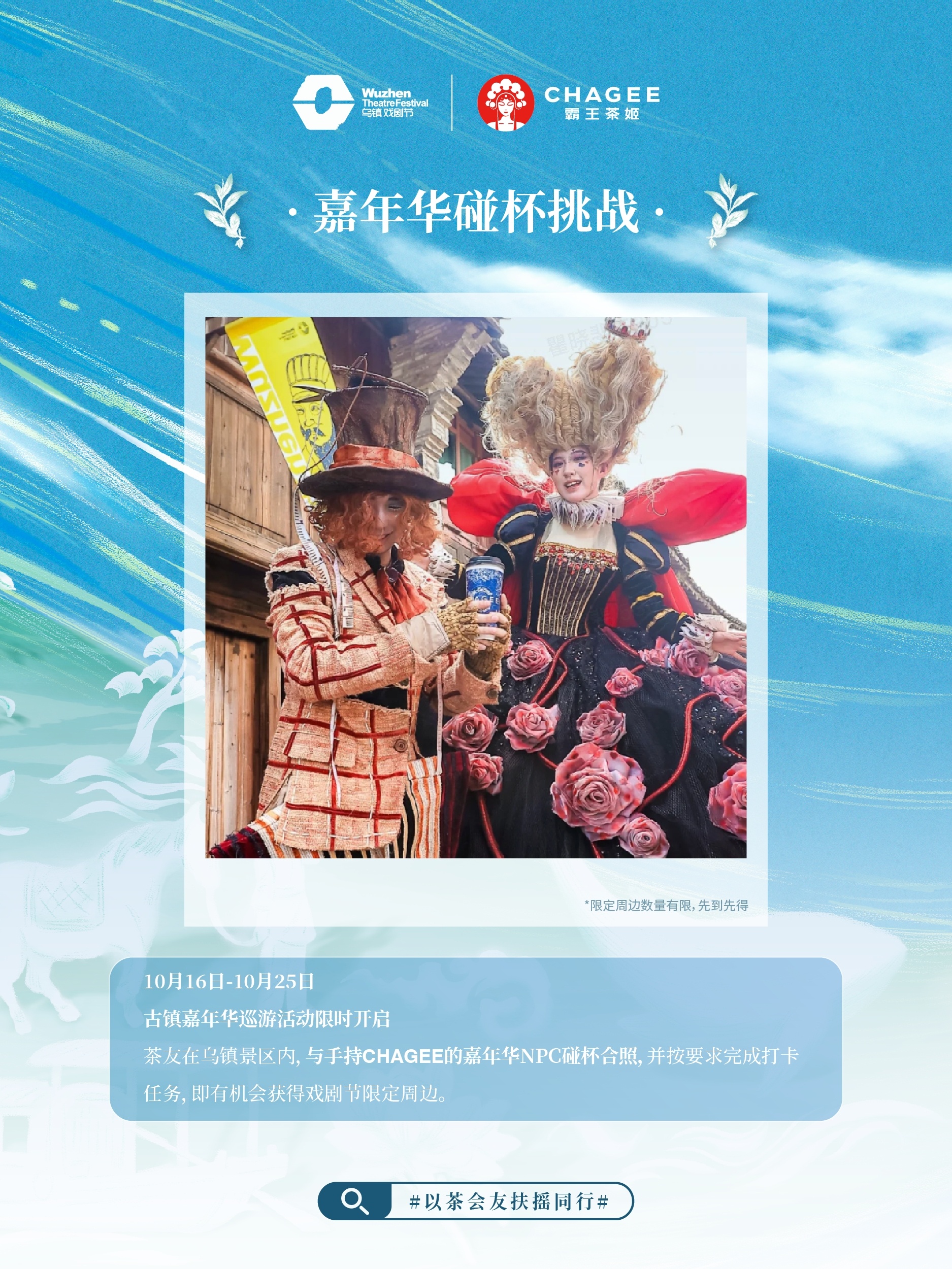 为了给游客与茶友带来一场兼具味觉与视觉的文化盛宴,霸王茶姬带来了更沉浸式的「入戏指南」:包括 CHAGEE 戏剧茶铺,CHAGEE 艺术装置、嘉年华巡游碰杯活动、「以茶会友·扶摇同行」主题剧目、三款联动周边、专属戏剧台词小票、限定戏剧人格卡片等。
