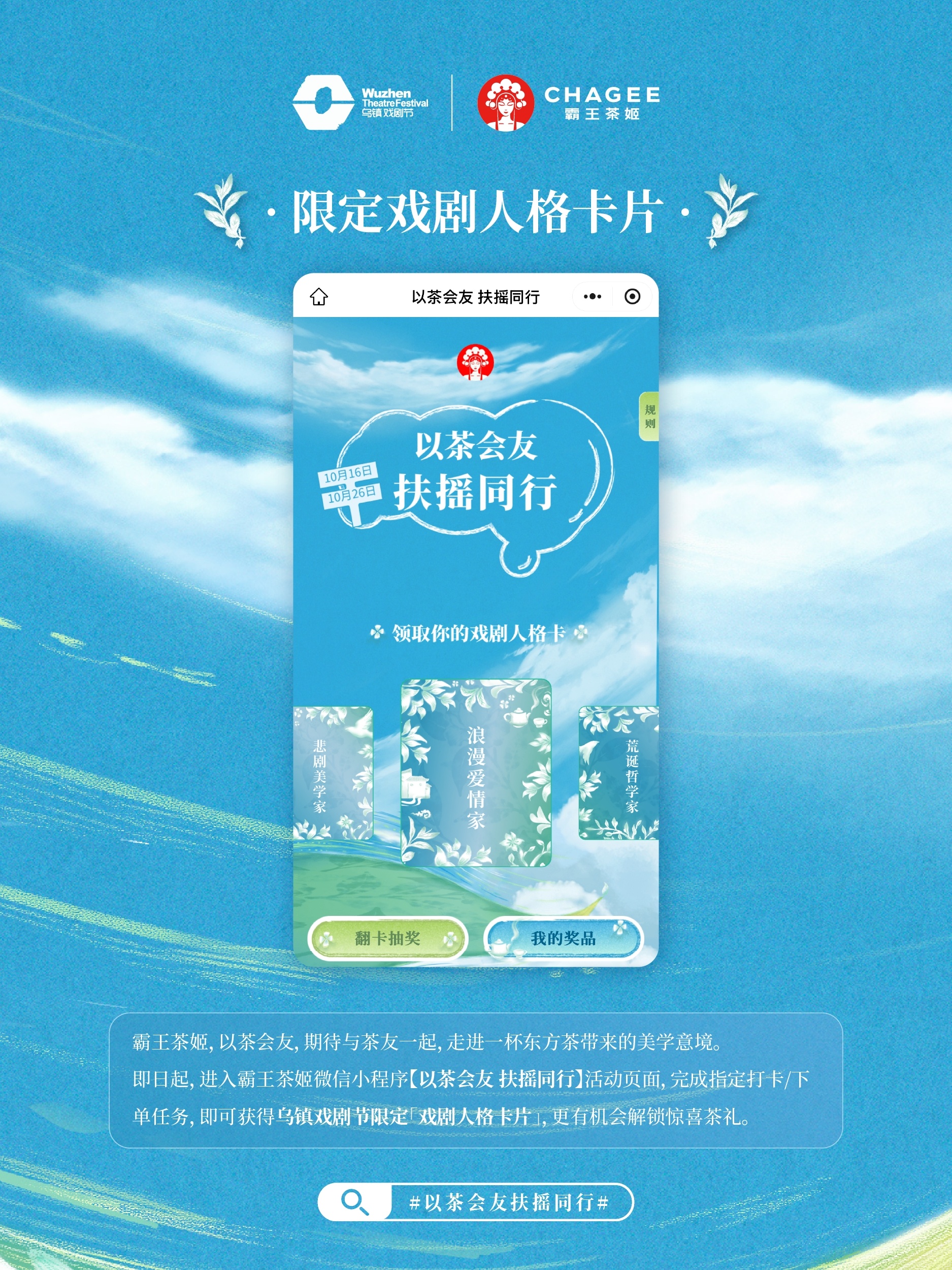 在乌镇,戏剧从来不止属于舞台。霸王茶姬希望把「剧场感」带回日常,也许是一张印着台词的小票,或是一张限定戏剧人格卡片,或是一杯茶的余香,让生活本身就成为一场戏。