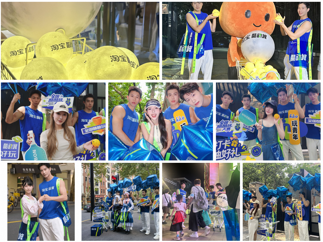 中秋当天,上海街头惊现「酷动男团」,为淘宝酷动城「全国酷酷玩大赛」官宣造势。10 月 6 日至 9 日,线下「全国酷酷玩大赛」以「一城一运动」形式陆续在全国多城落地线下趣味赛事:上海匹克球、北京荧光羽毛球、重庆拳击、成都街舞、杭州台球……每场赛事紧扣平台主推的趋势运动,既有专业玩家同台竞技,也有「林黛玉打拳」「格斗唐僧」「古风小生打台球」等反差人设引爆话题。