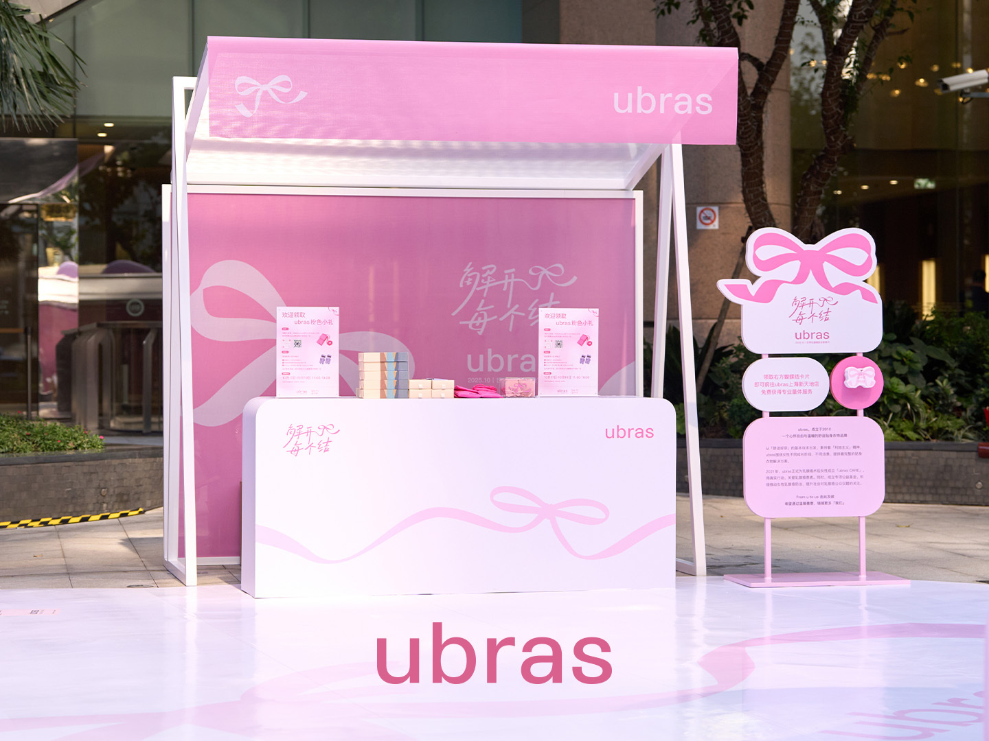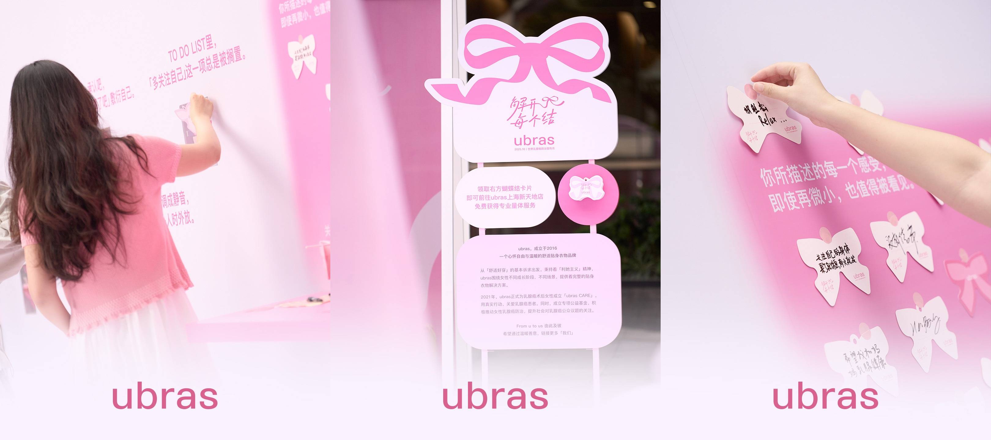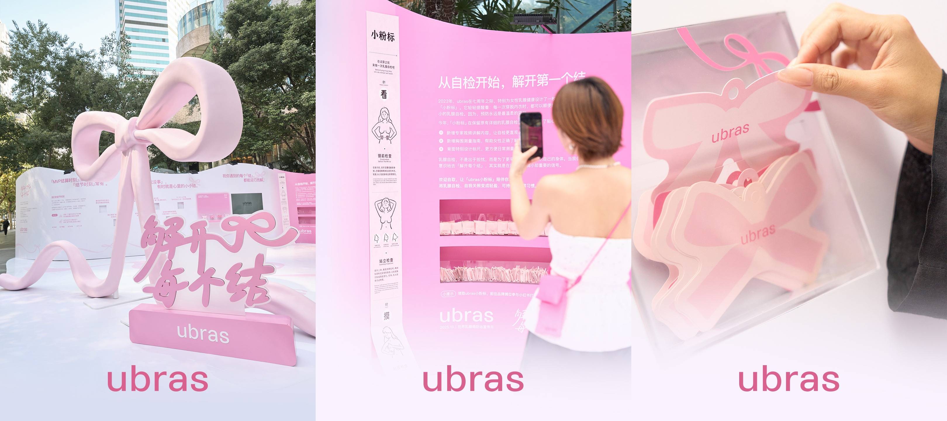 不仅如此,品牌还在上海打造了 Mini 限时公益快闪,现场准备了「我们的结节时刻」投票互动墙、乳腺自检「小粉标 2.0」公益领取点等活动装置,邀请大家来体验「解开每个结」的过程。对于没法亲临现场体验的消费者,ubras 也在全国门店开启了「解结」服务,欢迎各位来体验全新升级的「小粉标 2.0」和专业量体。国际乳腺癌防治日当天,品牌还联合 Saucony 索康尼在北京、上海与近百位女性一起出发,跑出健康,也跑出觉察与力量。