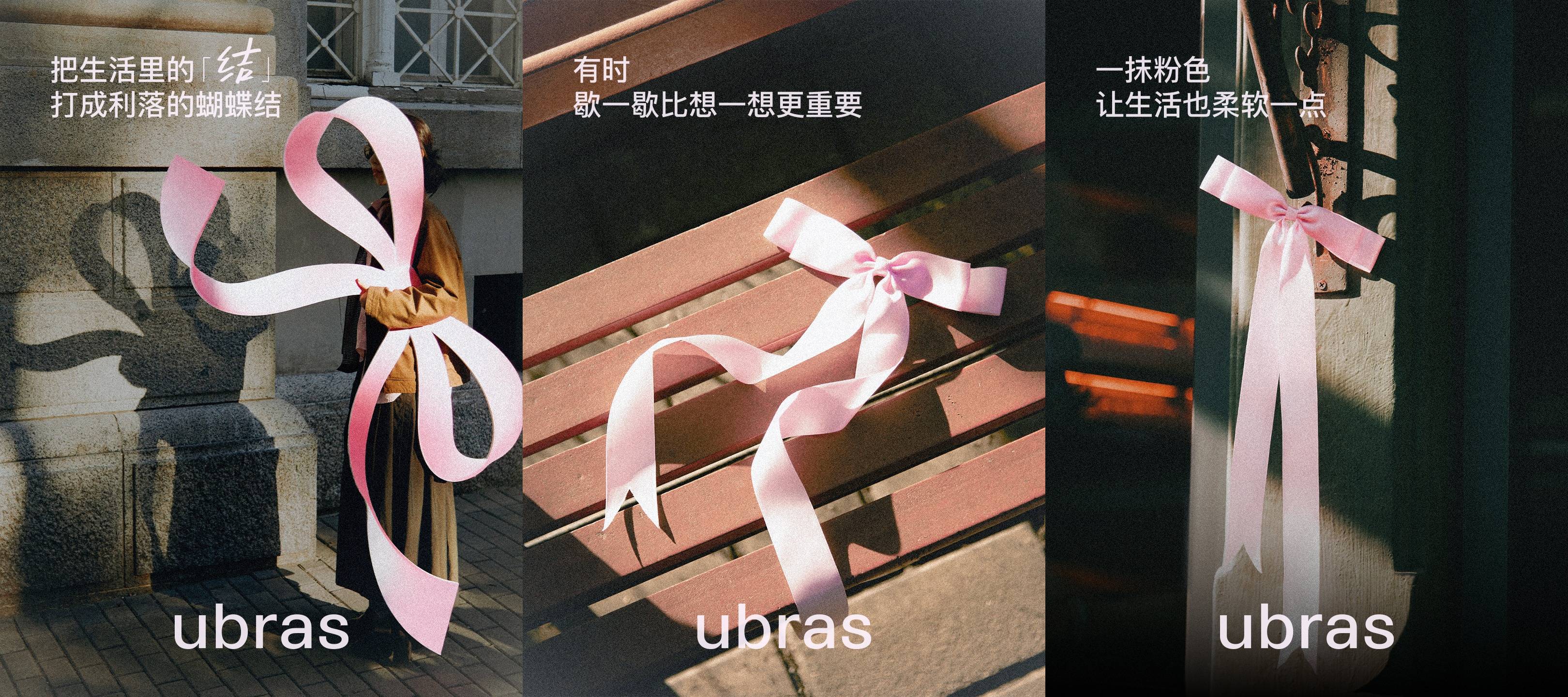 ubras 把「小粉标」化成一枚「蝴蝶结」。不仅是一种连结的展现,也是一种提醒。希望它能让乳腺自检这件事不再只属于十月,或者某一个公益节点,而是能落在生活里变成一种日常的、持续的关心。系上一枚蝴蝶结,解开一处身体的结从身体的觉察开始,也许就能慢慢地解开情绪的结、生活的结多一点觉察,也就多了一点去选择如何生活的自由。