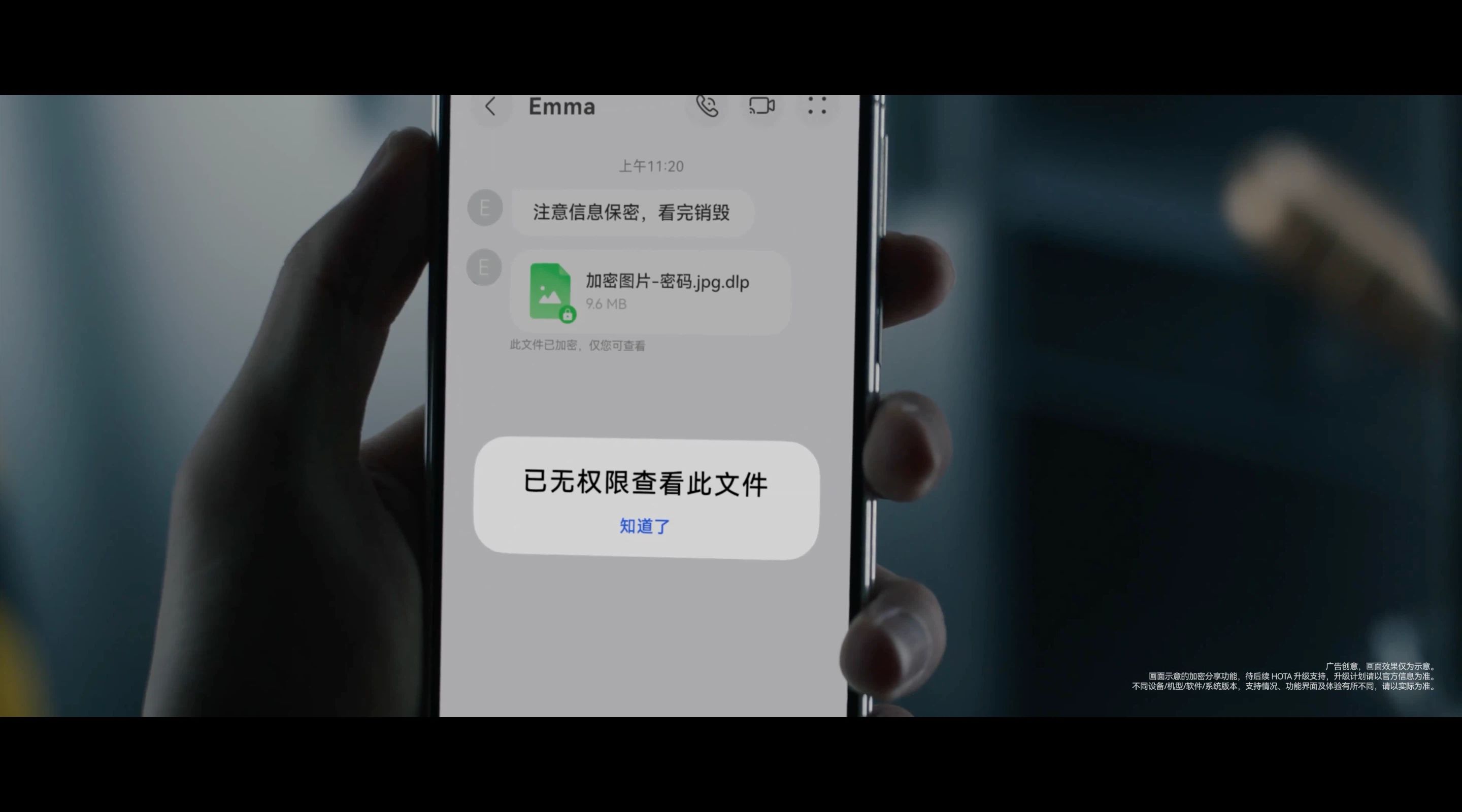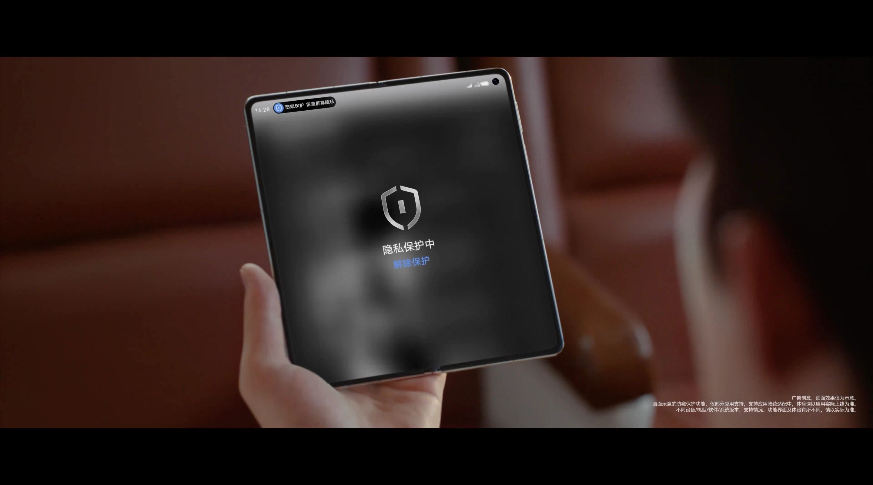 同时,华为携手演员于和伟上演了一场「隐私安全悬疑大片」。延续他在谍战剧《沉默的荣耀》中「特工」吴石的角色设定,片中于和伟在片中化身多重身份,以特工视角演绎鸿蒙 6 的安全防护场景:当系统检测到旁人注视时,AI 防窥功能会自动隐藏屏幕内容;加密分享功能则支持「仅可查看一次」,重要信息「阅后即焚」;精准控制 APP 权限,防止过度索取用户数据。