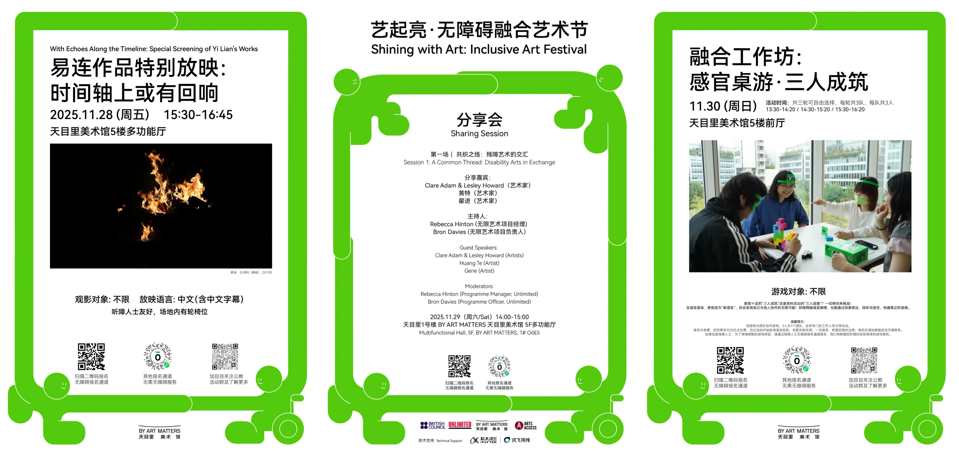 在天目里看来,「无障碍」的受益者并不是少数人,而是生活中可能遭遇过类似不便的每个人。基于此,本次活动主题「艺起亮」更像是一份邀请,邀请不同群体用自己的方式靠近彼此,共同构建一个包容、无障的未来;所谓「融合」也不是单向的帮助,而是一场平等的对话与共创。