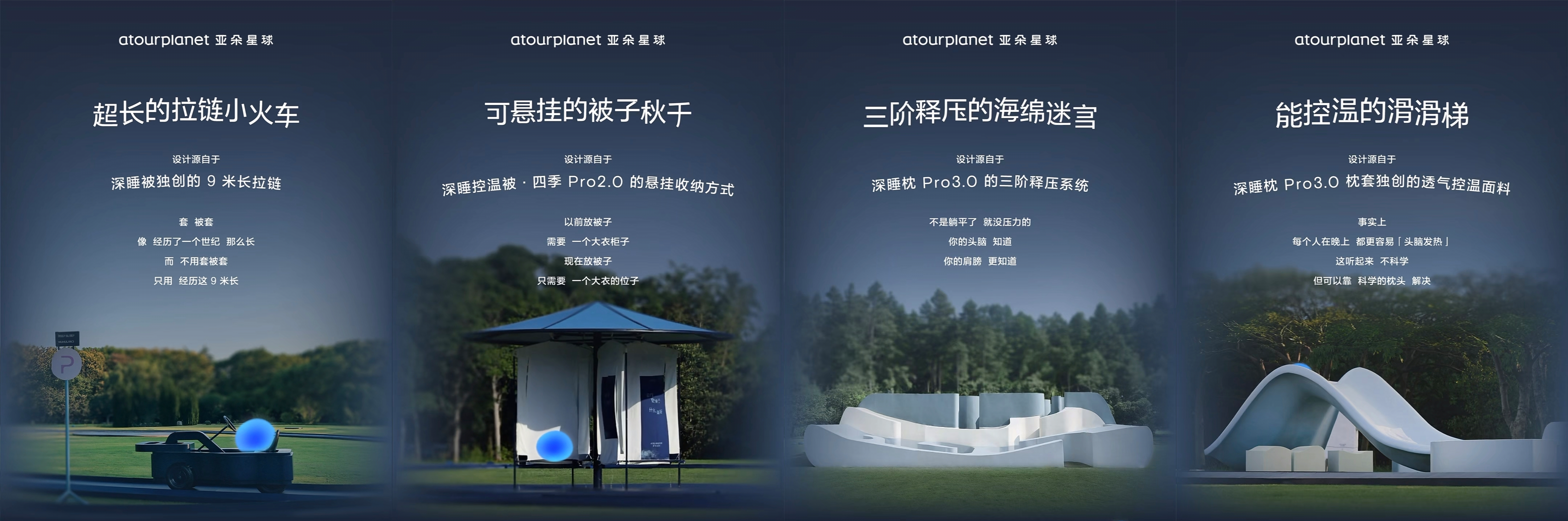 随后,她们还体验了「深睡乐园」里的互动装置,「超长的拉链小火车」灵感源于亚朵星球首创的深睡被 9 米长拉链,此外还有可悬挂的被子秋千、知冷知热的蹦蹦床、三阶释压的海绵迷宫等,将深睡枕与深睡被的设计理念具象化为实物,让深睡眠的乐趣具体可感。