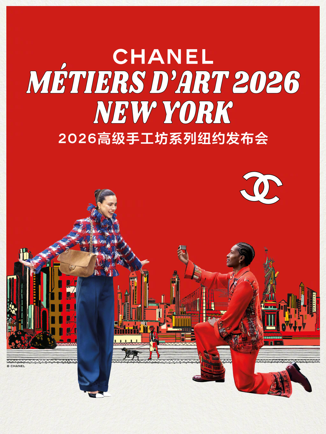 官方任命伴随一支由 Margaret Qualley 与 Rocky 共同出演的短片。影片取景纽约,从威廉斯堡一路到 Astor Place,两人以轻松而戏剧化的方式推动故事节奏,途中 Rocky 狂奔、游泳,并在折扣店完成换装,最终在地铁口为 Margaret Qualley 献上香奈儿白盒。短片为即将登场的 2026 Métiers d’Art 高级手工坊系列拉开序幕,也是新晋创意总监 Matthieu Blazy 加入品牌后的首个高级手工坊发布。
