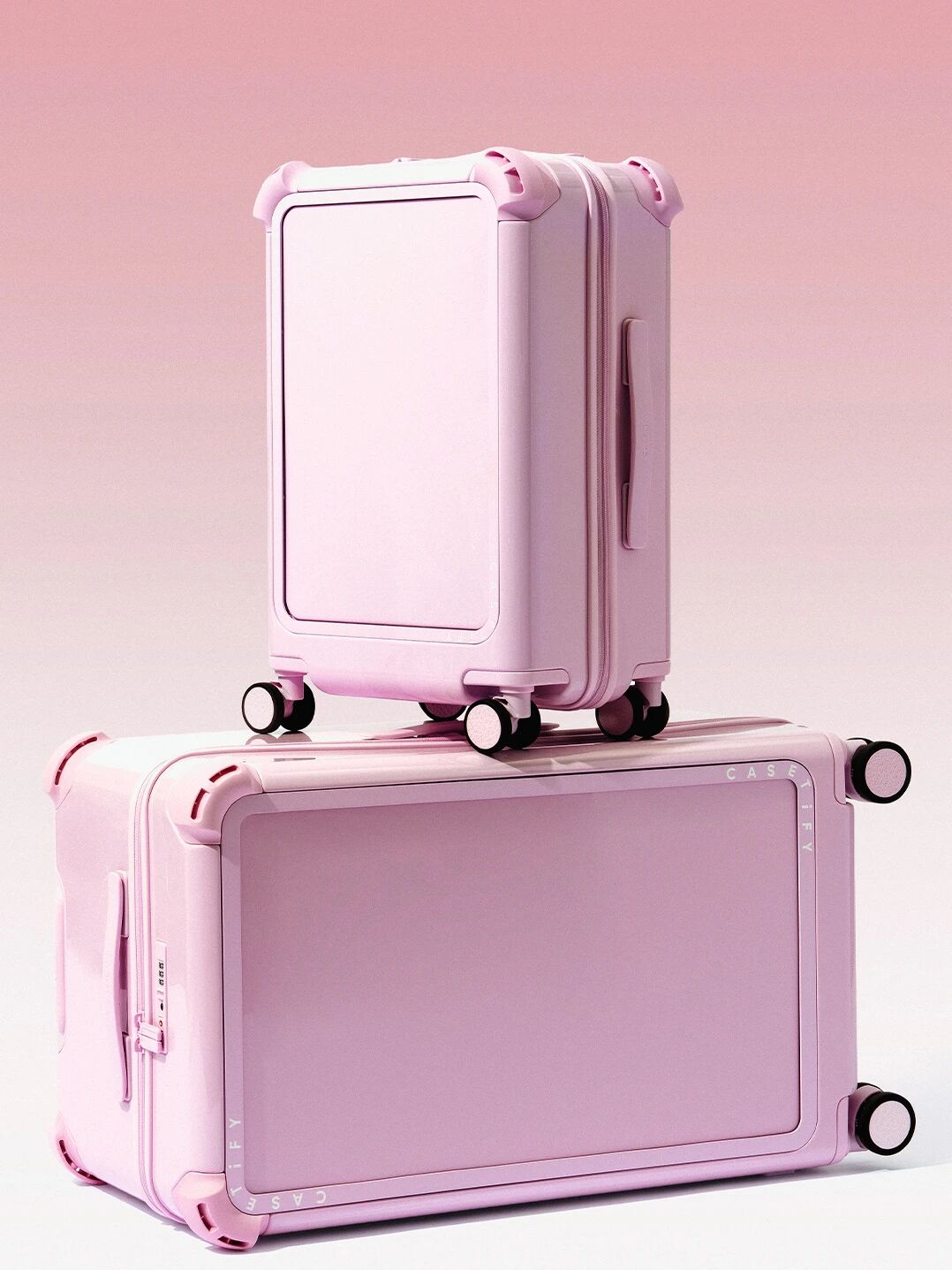 该配色灵感源自时装周流行趋势,CASETiFY 用这抹明媚灵动的亮面樱草粉,强势打破传统出行装备的沉闷与单调,为旅途注入鲜活色彩,将旅行箱打造成专属「潮流移动衣橱」。