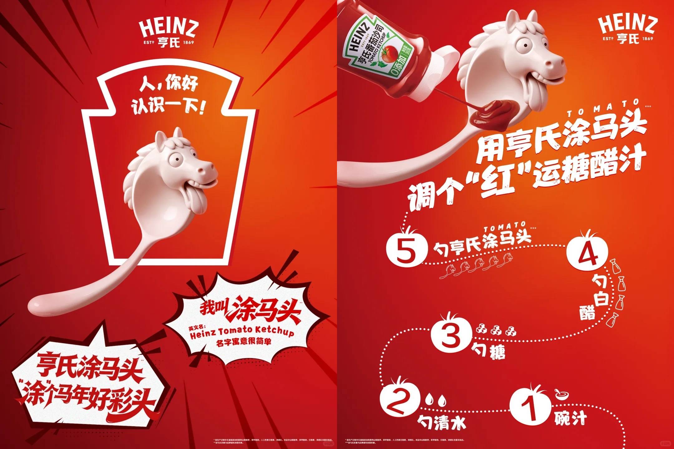 而在线上,品牌也随即发布新年 tvc,以番茄酱的英文谐音 tomato——「涂马头」为灵感,教大家烧出美味好吃的糖醋菜,一起「新年露一手,涂个马年好彩头」。