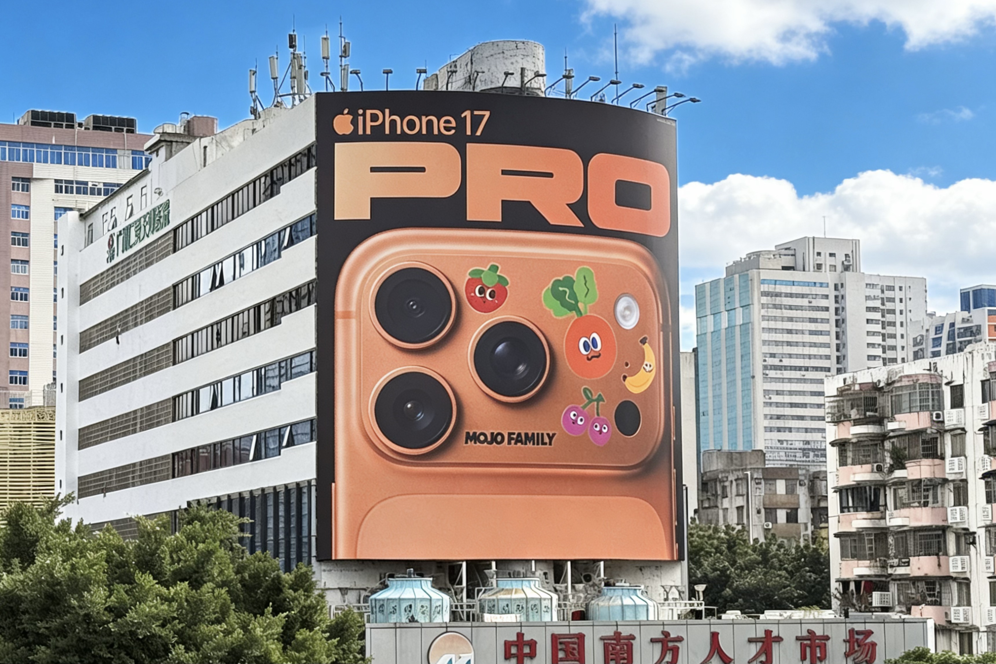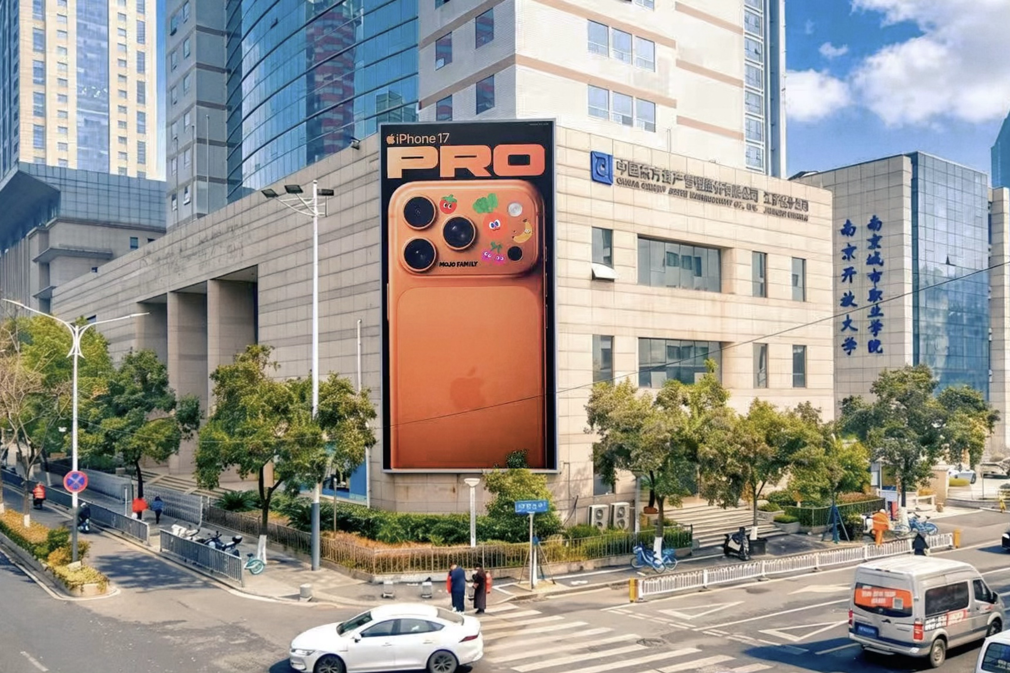 同步网友也在深圳、广州、杭州、南京等地陆续发现同款巨型广告牌,全部广告牌上 iPhone 17 Pro 的背壳都巧妙地跃上了「MOJO FAMILY」家族活力缤纷的形象,快乐氛围拉满。此次联动也展现双方链接年轻世代意图,让手机本身化身为展现个性画布的同时,亦鼓励年轻人挥洒创意,让热爱陪伴在生活的方方面面。