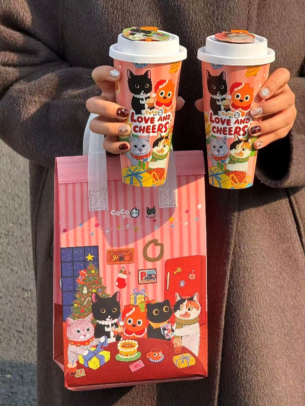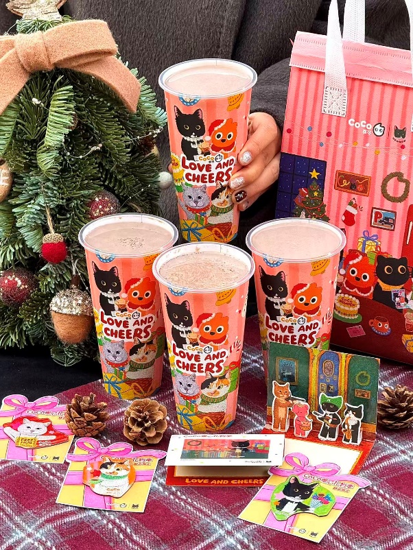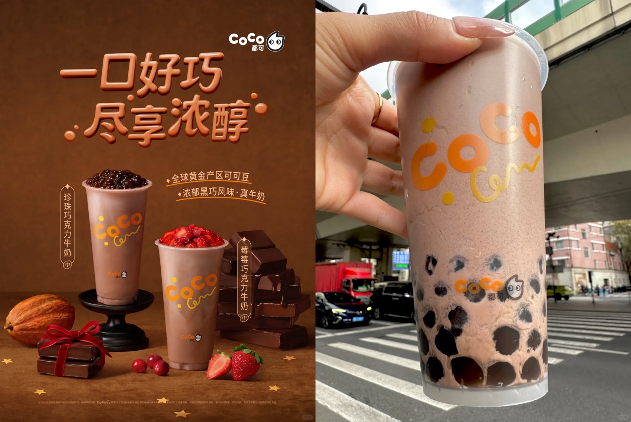 在此次圣诞礼物季中,小 Co 送出的首份暖心好礼便是粉丝呼唤已久的「珍珠巧克力牛奶」。CoCo 精选西非与南美洲黄金产区的可可豆,经三道工艺精细研磨成 200 目细腻粉质,融入真牛奶,搭配每日门店现煮 Q 弹珍珠。饮品入口呈现浓郁可可原香,尾韵绽放花果香气,黑巧风味层次丰满,为冬日注入丝滑暖意。