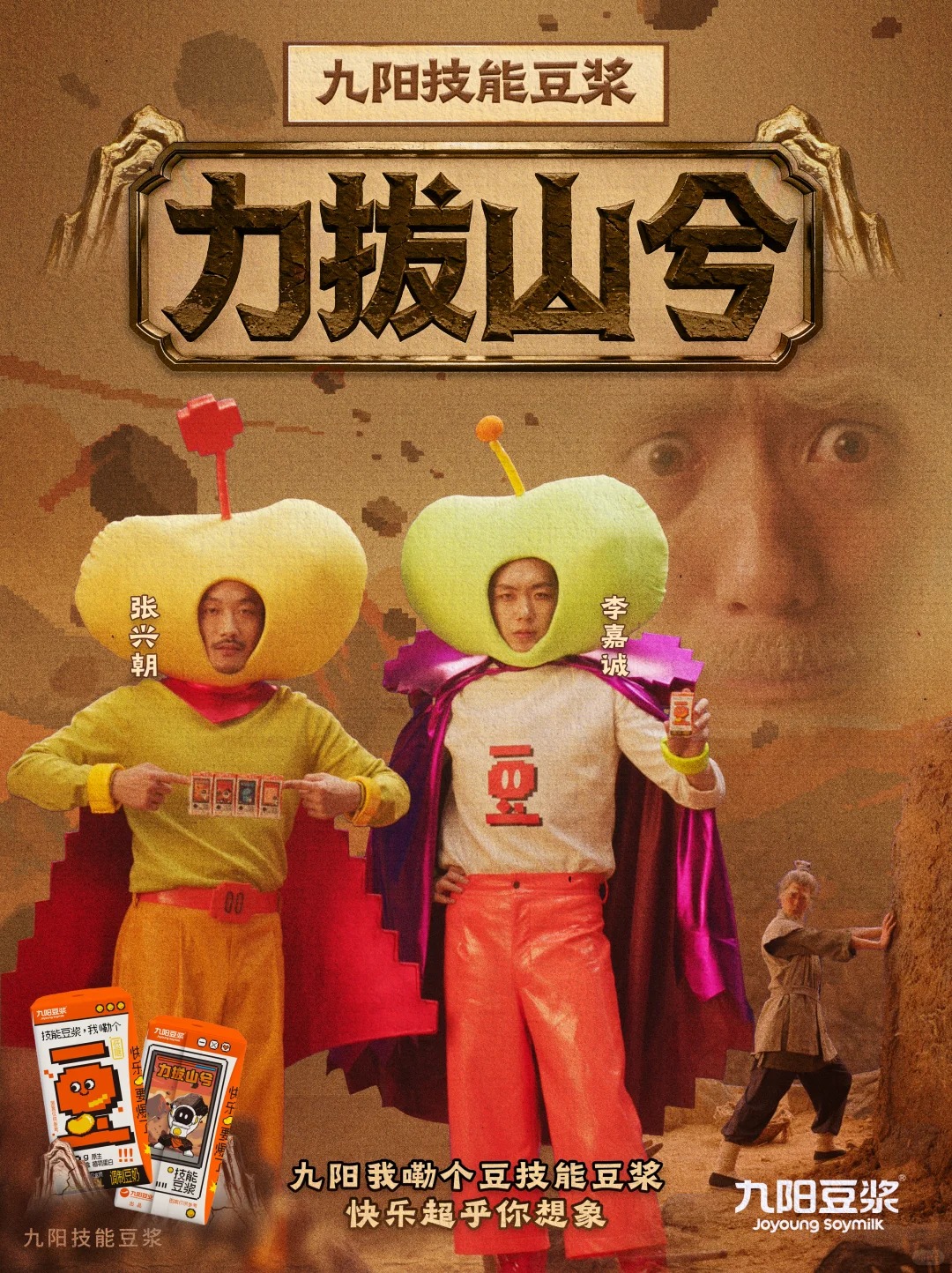 在二者发布的抽象短片中,九阳把外星从《技能五子棋》作品里的「技能」给全新演绎了一遍,用「飞沙走石」帮「法老」建金字塔、用「力拔山兮」帮「愚公」移山、用「时光倒流」帮「嫦娥」下班,短片不仅巧妙呼应了原作品中的诸多梗点,也强化了九阳豆浆「营养到位,快乐翻倍」的产品主张。同时,九阳还将抽象进行到底,在直播间上演趣味五子棋对决,延续这股轻松玩乐的传播氛围。
