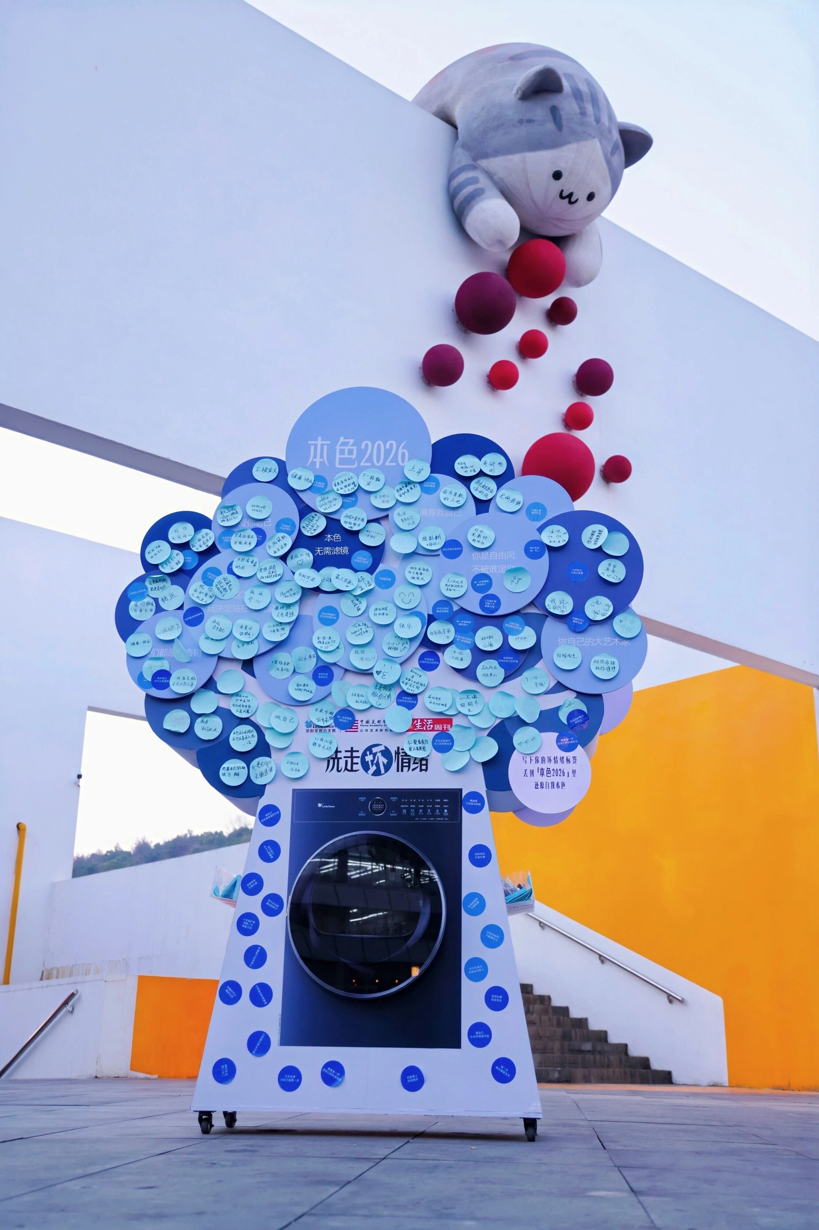 这其实是小天鹅联合三联生活周刊、中国美术学院共同发起的「还原本色·向美而生」公共艺术行动,小天鹅把「本色 2026」产品变成治愈装置,希望在新旧交替的开始,让用户能将这一年的坏情绪与对未来的憧憬投递,完成一次情绪的回收。