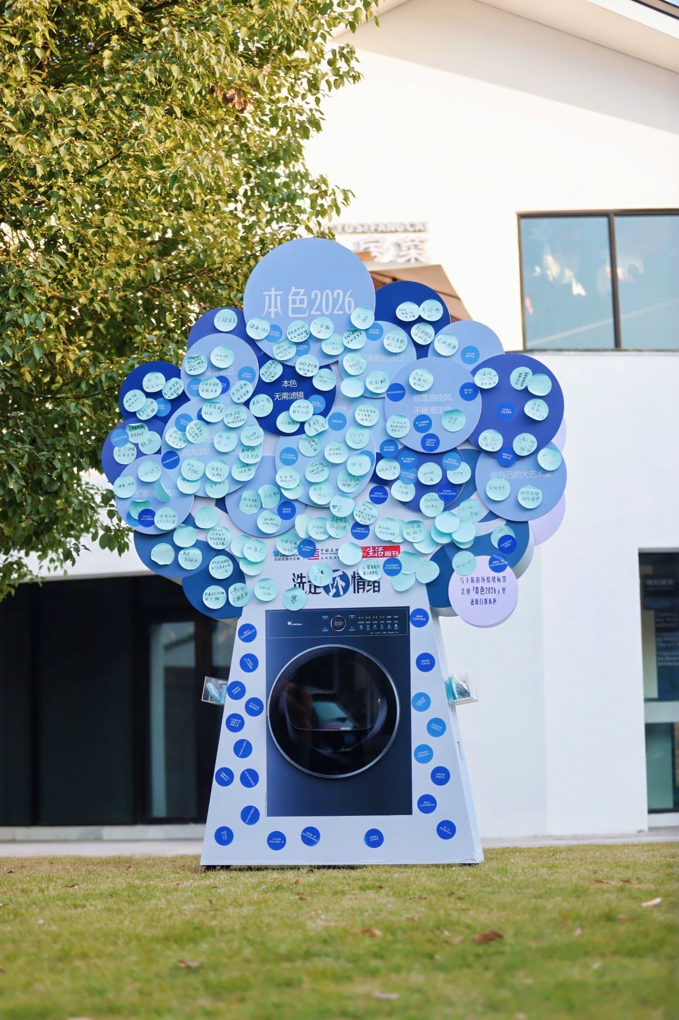 参与者可以将焦虑、遗憾等负面情绪写在标签上投入滚筒,象征「洗去」坏心情。部分装置设计为树洞形态,强化私密倾诉感,现场提供「本色 2026」主题便签纸,鼓励同时书写新年期许。