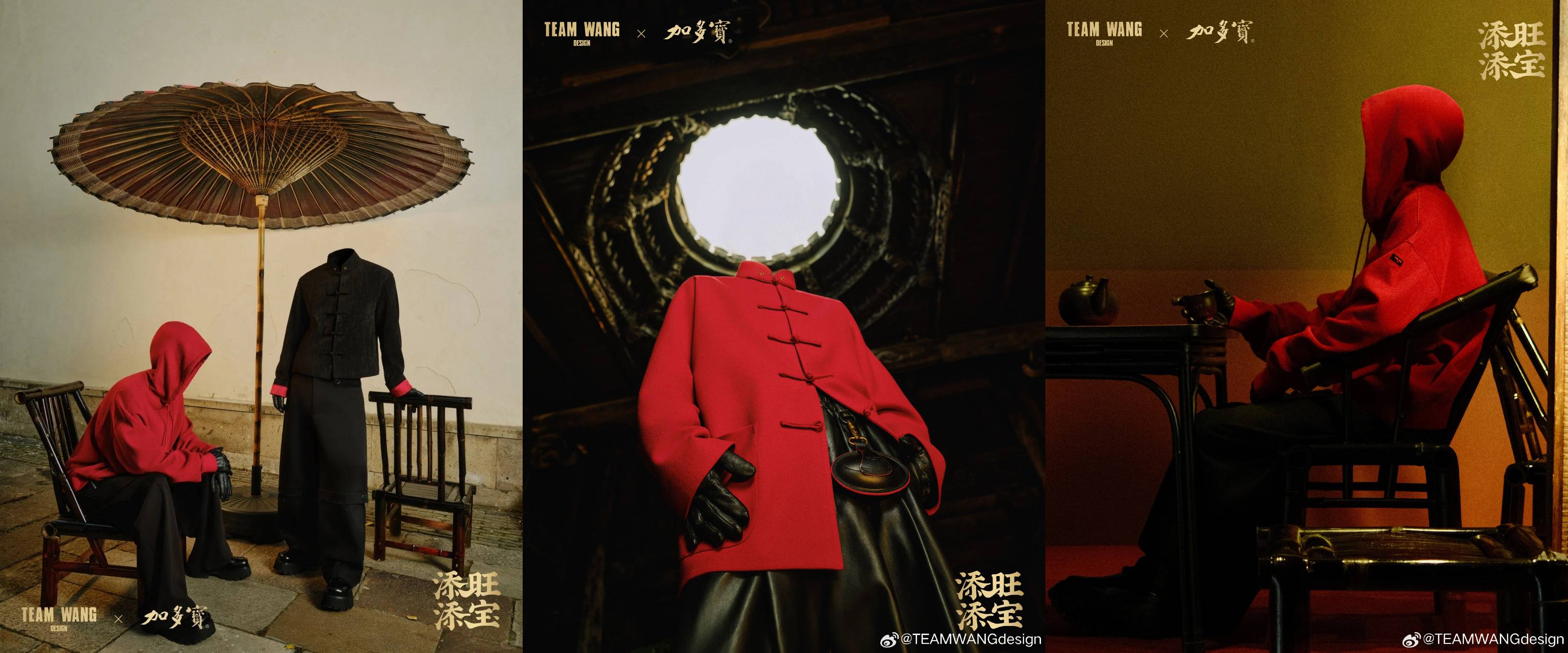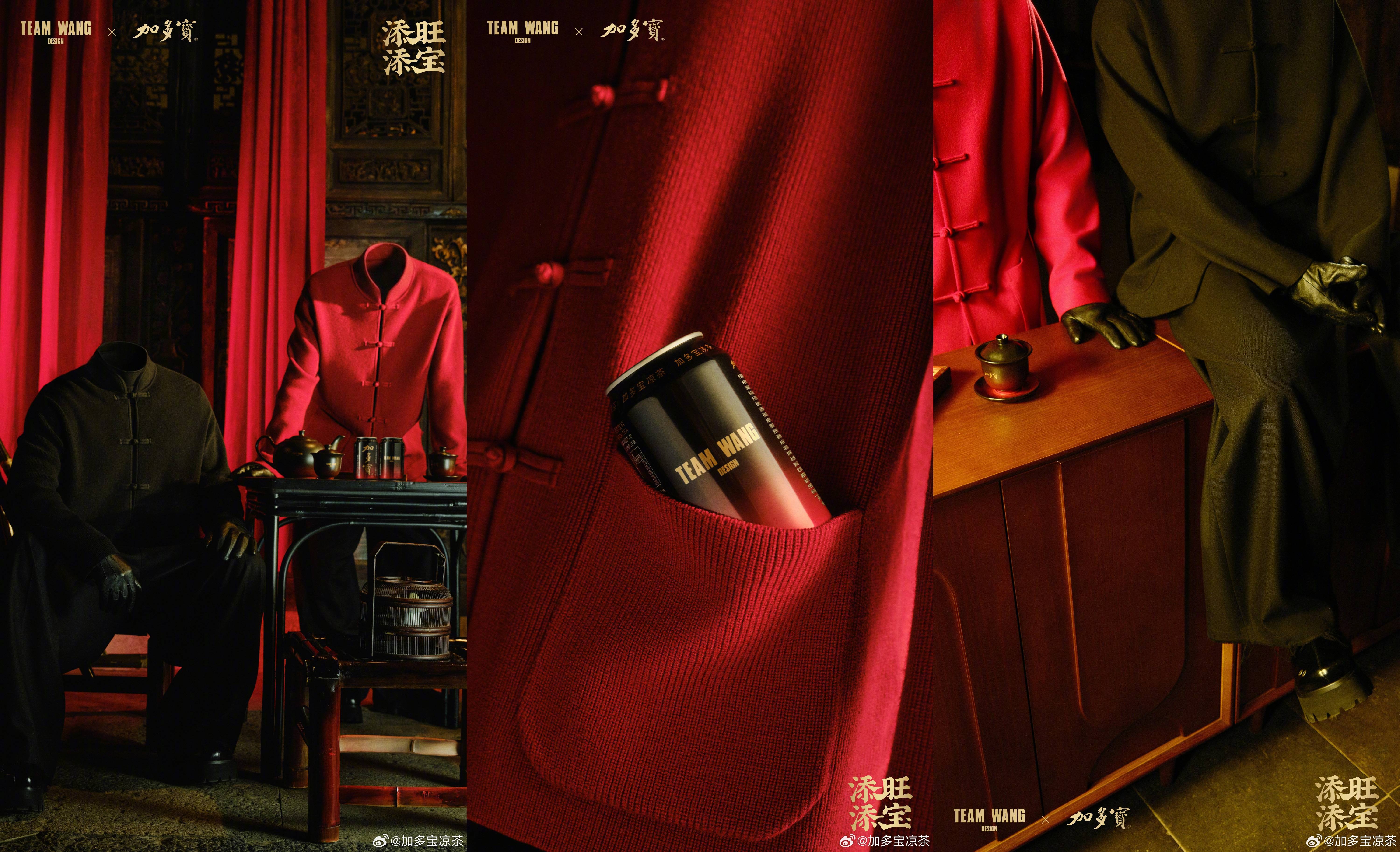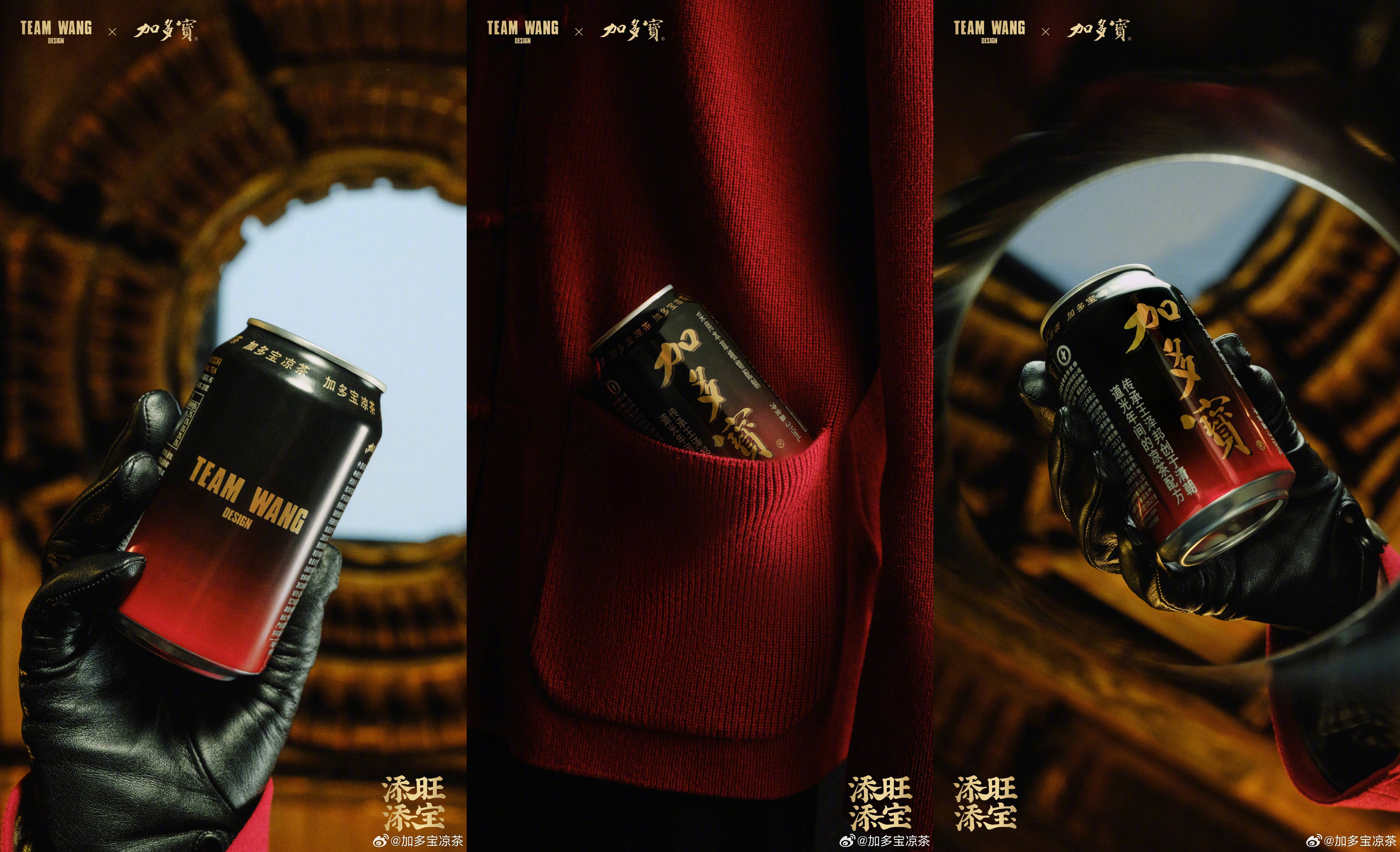 系列设计将打破传统凉茶刻板印象,从传统茶文化中汲取灵感,在色彩、寓意与细节处凝练匠心,注入自我表达的基因,打造多维度的新春服饰与佳礼。限定凉茶将加多宝的「宝」与 TEAM WANG design 「旺」相结合,传递为大家「添旺添宝」的祝福,更表达年轻人的新年「态度」。联名唐装服装则将传统服饰廓形结合现代剪裁,让唐装拥有更潮流的表达,背部「寶」字刺绣、「TEAM寶」MONOGRAM 提花里布,让「添旺添宝」的好寓意由内而外。