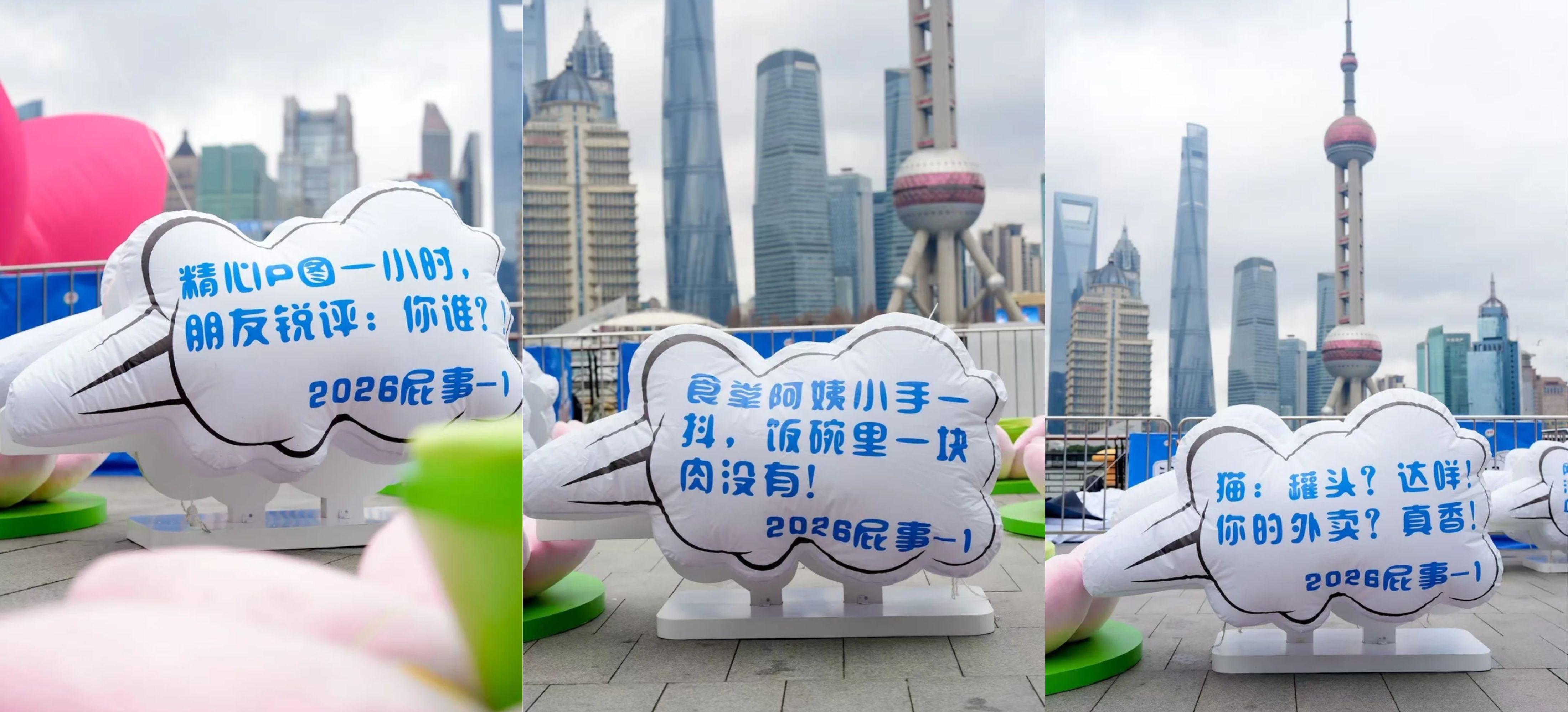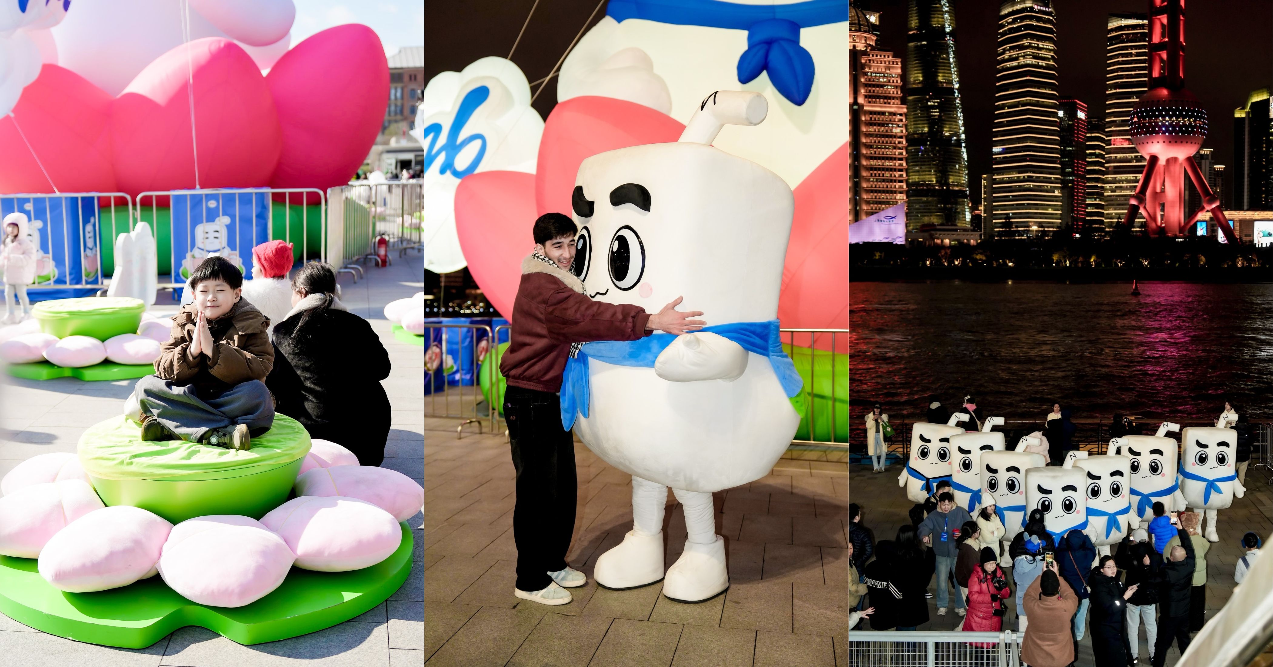 跨年夜当晚,7 只小奶人 IP 人偶集体亮相,献上定制版屁音《新年快乐》表演与舞蹈,用「噗噗噗」的魔性节奏点燃全场氛围。活动期间,这群可爱的「街溜子」还在上海开启「炸街」模式,复刻领带转场挑战、集体跳海豚舞、「敢问阁下怎么称呼」等社交热梗,推出一系列视频,并联动小红书博主@宇宙男孩正峰 进行互动,进一步放大活动声量。