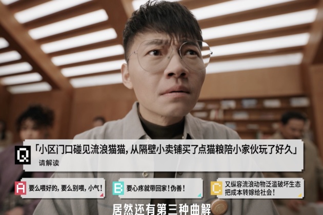 首先,请来朱广权就是一步妙棋。在视频中,QQ 星设置了一个「新闻现场」,通过朱广权押韵的趣味风格,在剧情探索中不断甩梗,将原本需要严肃探讨的教育议题,转化为轻松有趣的互动表达,让消费者在欢乐中自然接受核心观点。