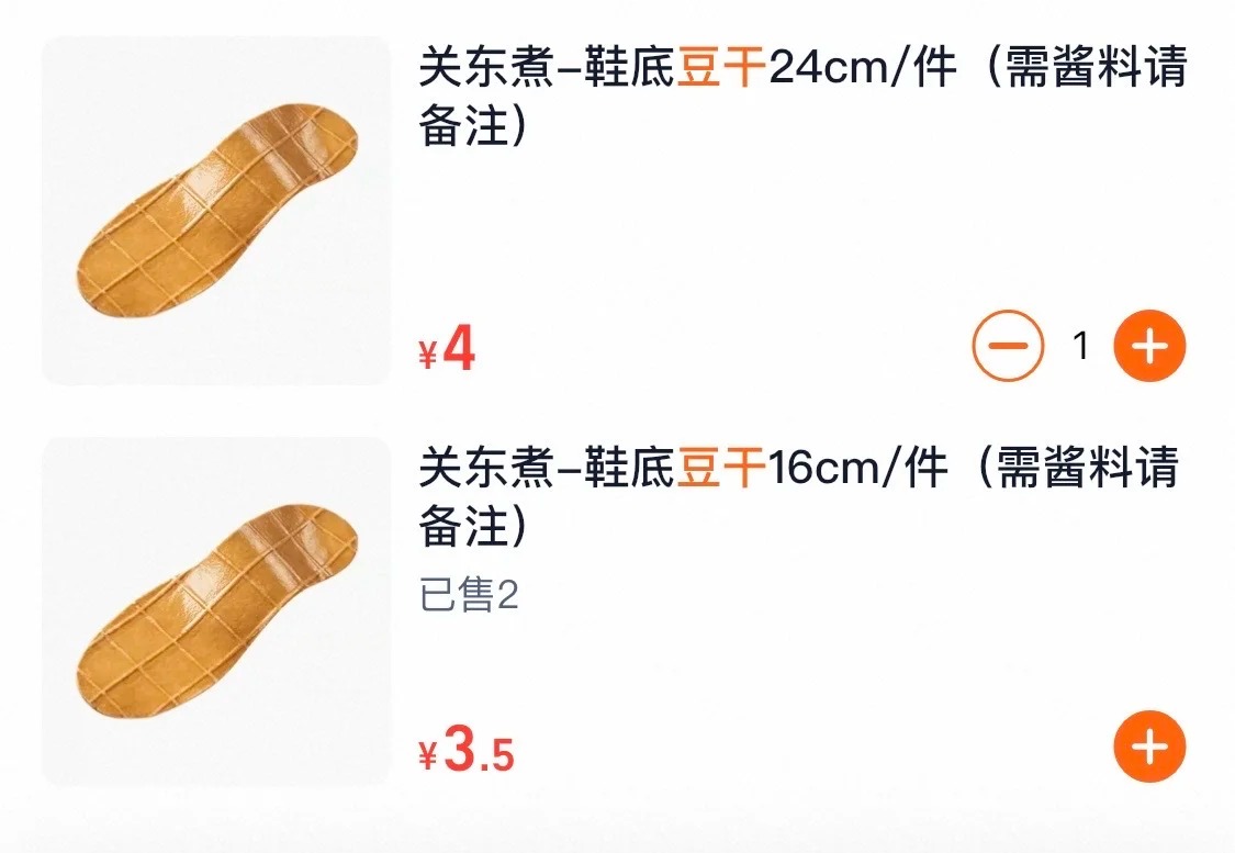 近日,7-Eleven 便利店在广东区域的关东煮类目下悄悄上线了一款脑洞打开的单品——鞋底豆干。产品不仅形状酷似鞋底,连尺码都贴心地推出了两款,分别为 16 厘米长对应 22 码鞋和 24 厘米的对应 38 码,一经上线就受到了不少网友的青睐。不少消费者晒出购买照片调侃自己「也是吃上鞋底了」,而官方则表示新品是为了呼应网络热梗「蘸鞋底都好吃」。关于鞋底豆干的实际味道,实际尝过的人反馈,豆干是扎实的川香卤味风格,口感偏硬但越嚼越香,和「鞋底」的梗莫名契合。