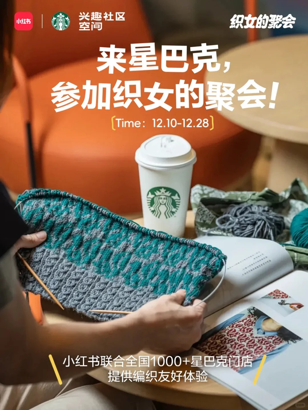 而在线下,小红书联合星巴克在全国 1000+ 手工友好空间提供编织友好服务,用户可以随时带上自己的毛线来织一下午,感受一个人的慢时光,也可以参加门店里的「织女的聚会」,有「哈利波特编织杯垫」和「哈利波特编织杯垫」两种编织活动可以体验。同时小红书也正式发起招募,旨在寻找并联合全国 1000+ 个温暖据点,共同为织女们提供从材料选购、技术交流到同好社交的友好体验!