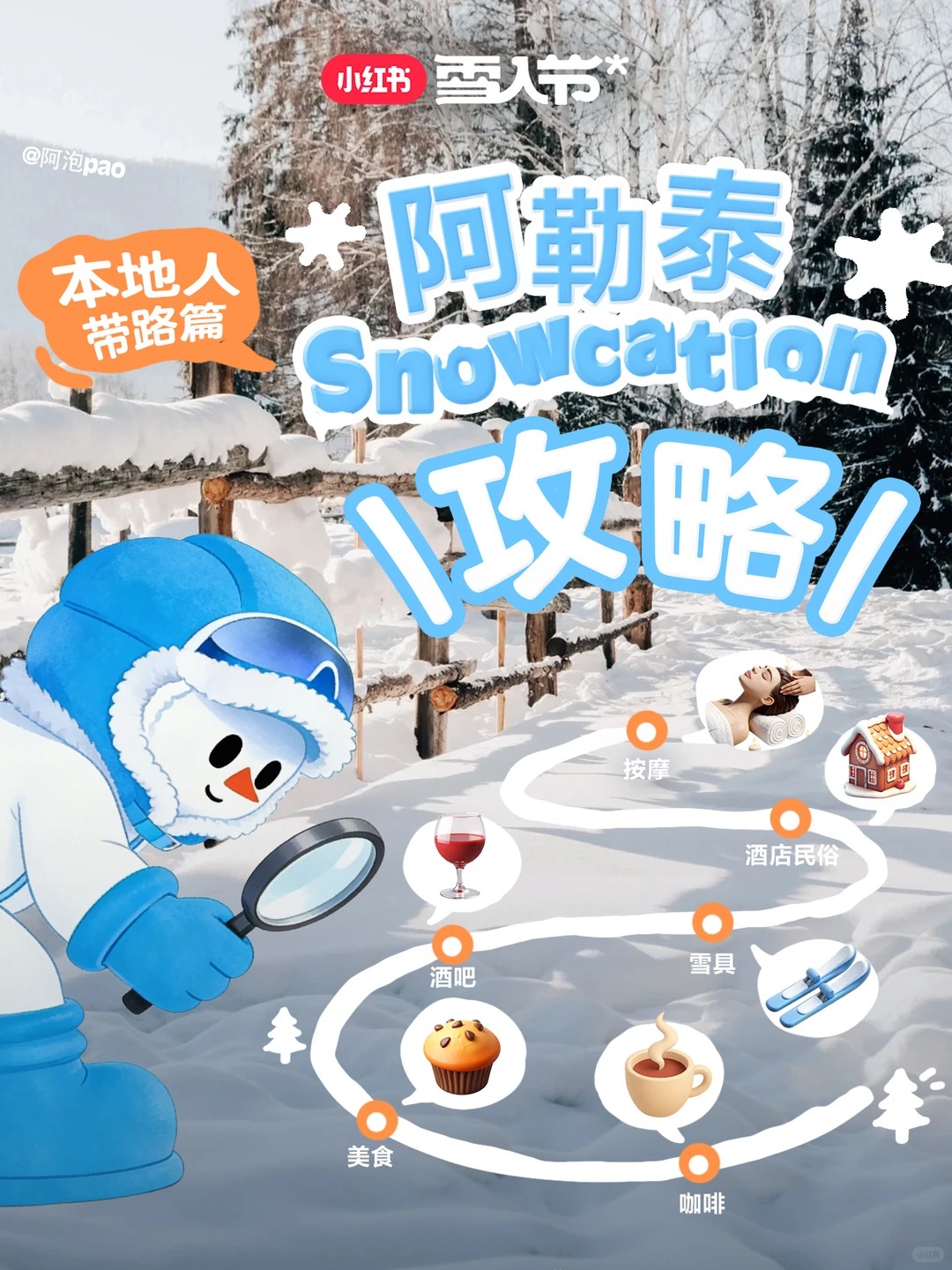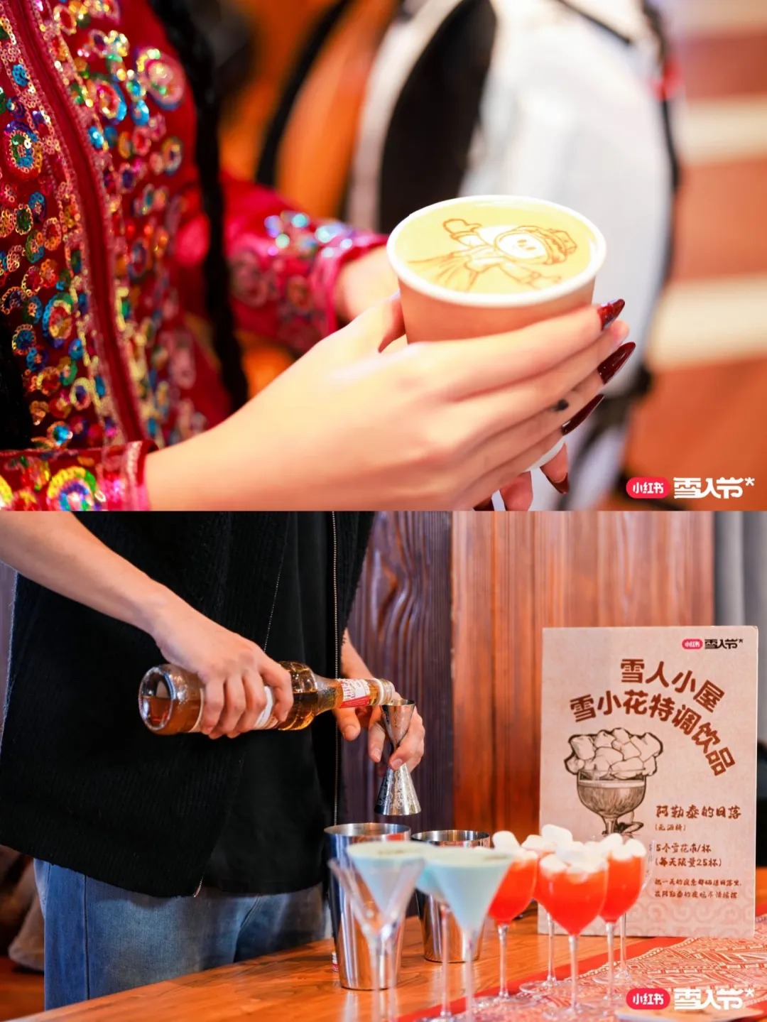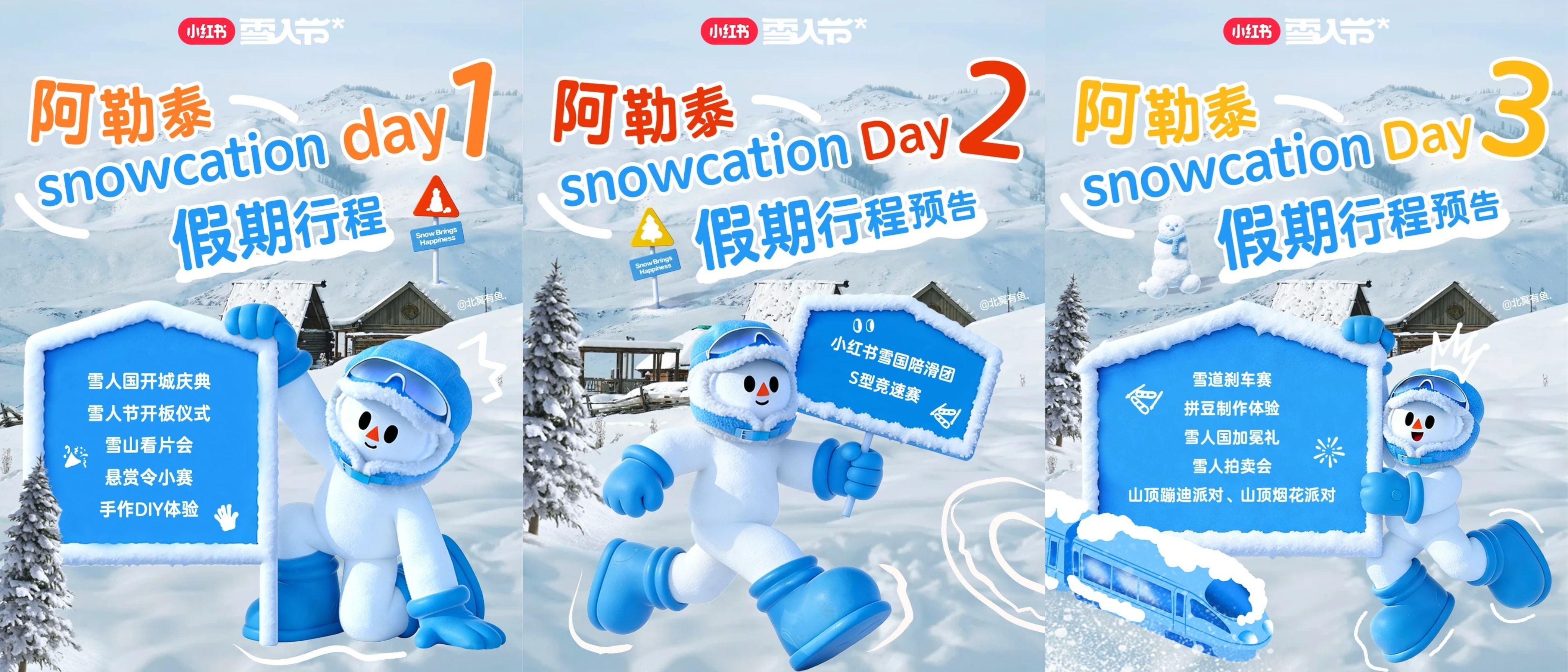 除此之外,小红书还通过联动阿勒泰本地宝藏店铺,将 IP 影响力延伸至城市商业空间。同时,线上 H5 互动页面与 #小红书雪人节、#白给的快乐在雪上、#雪地显眼包 等话题活动持续聚拢流量,实现了线上线下的全域共振。