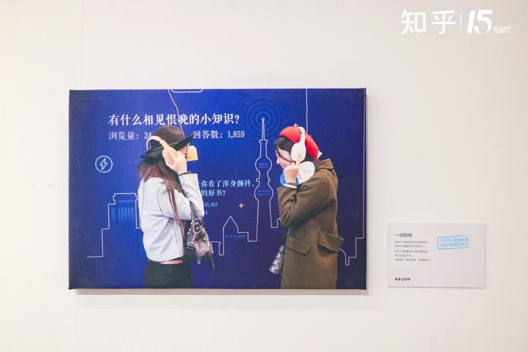 在 AI 生成内容成为常态的当下,知乎选择用最笨也最珍贵的方式策展,摒弃繁复华丽的装置,以「真诚」为底色,呈现了众多承载社区记忆与用户情感的内容。展览以「经验」为核心,通过「出发」「经历」「连接」「人」四大板块,串联起知乎 15 年来与用户的共同成长故事。