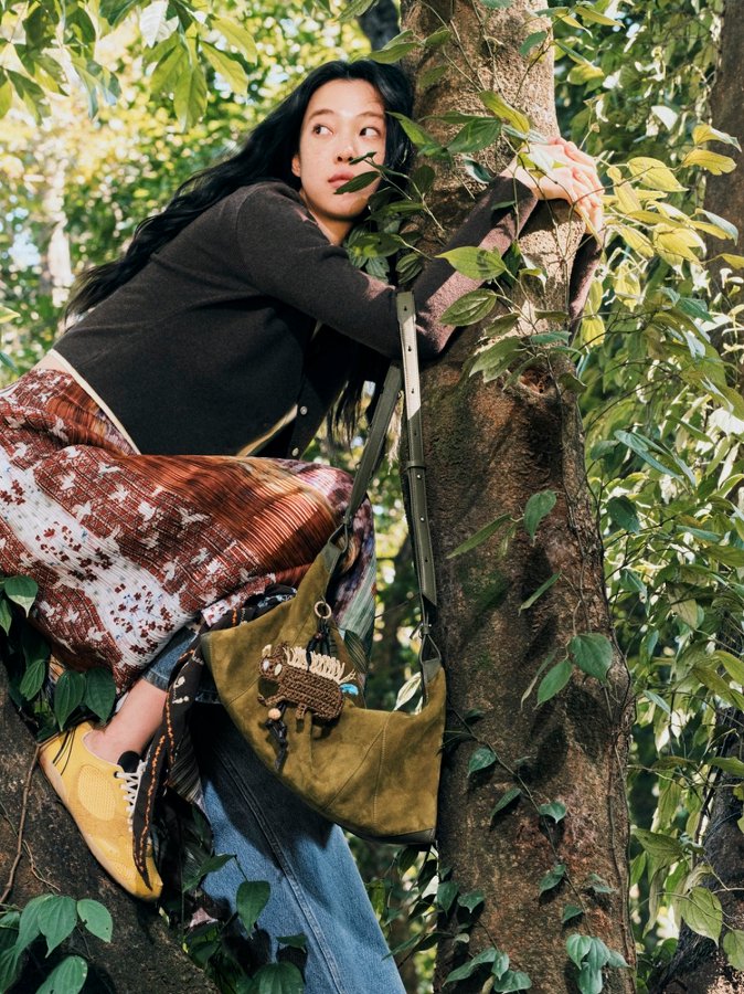 在材质选择上,系列甄选空气羊皮、反绒羊皮与缩纹山羊皮等优质皮料,以实现包袋轻盈柔软的视觉效果与持包体感。配色方面,除松果棕、羊绒棕、羊绒绿、经典黑、摩卡棕、杏仁白、麦芽黄等单色方案外,系列还推出「日落公园」与「彩线绒棕」两款拼色设计,以满足不同穿搭与使用场景。