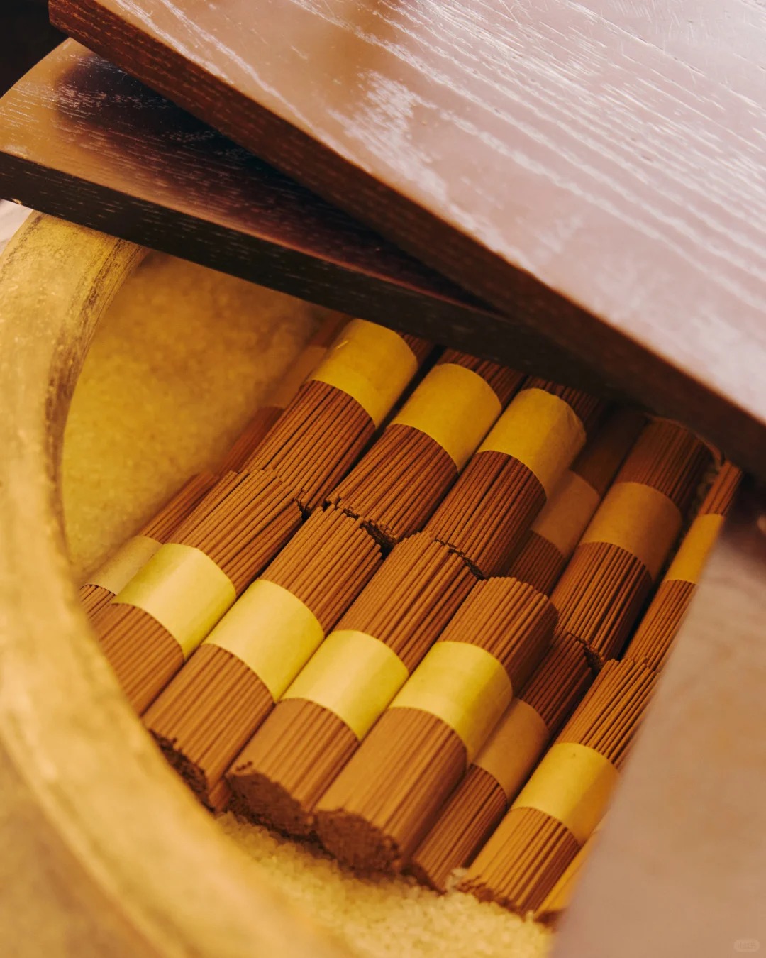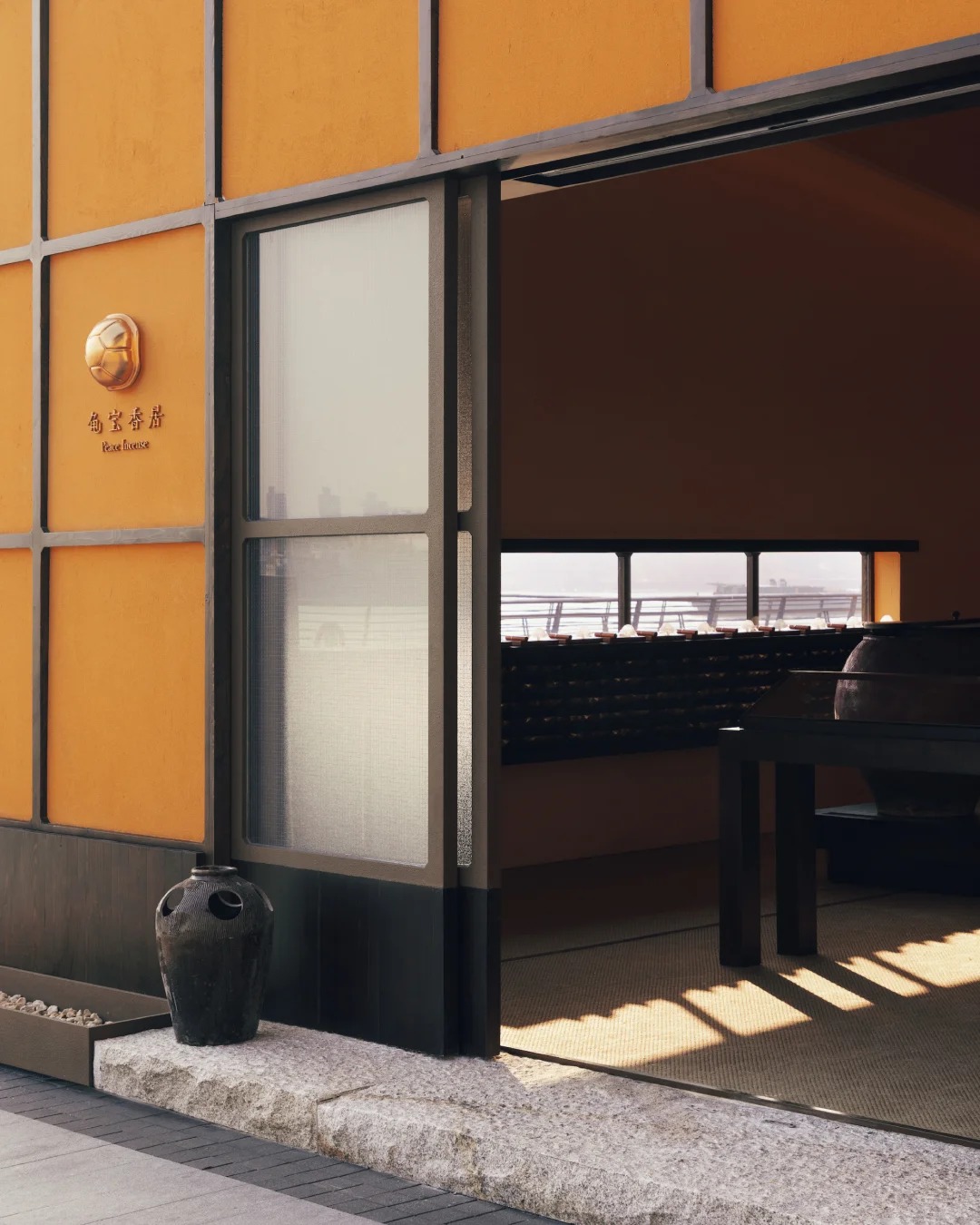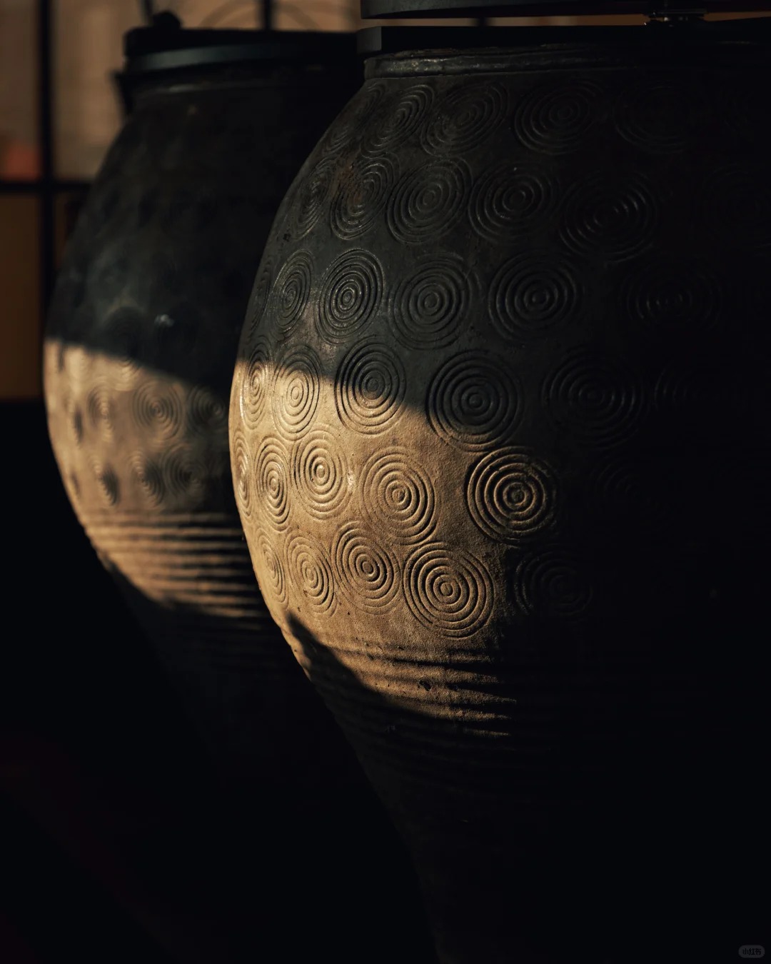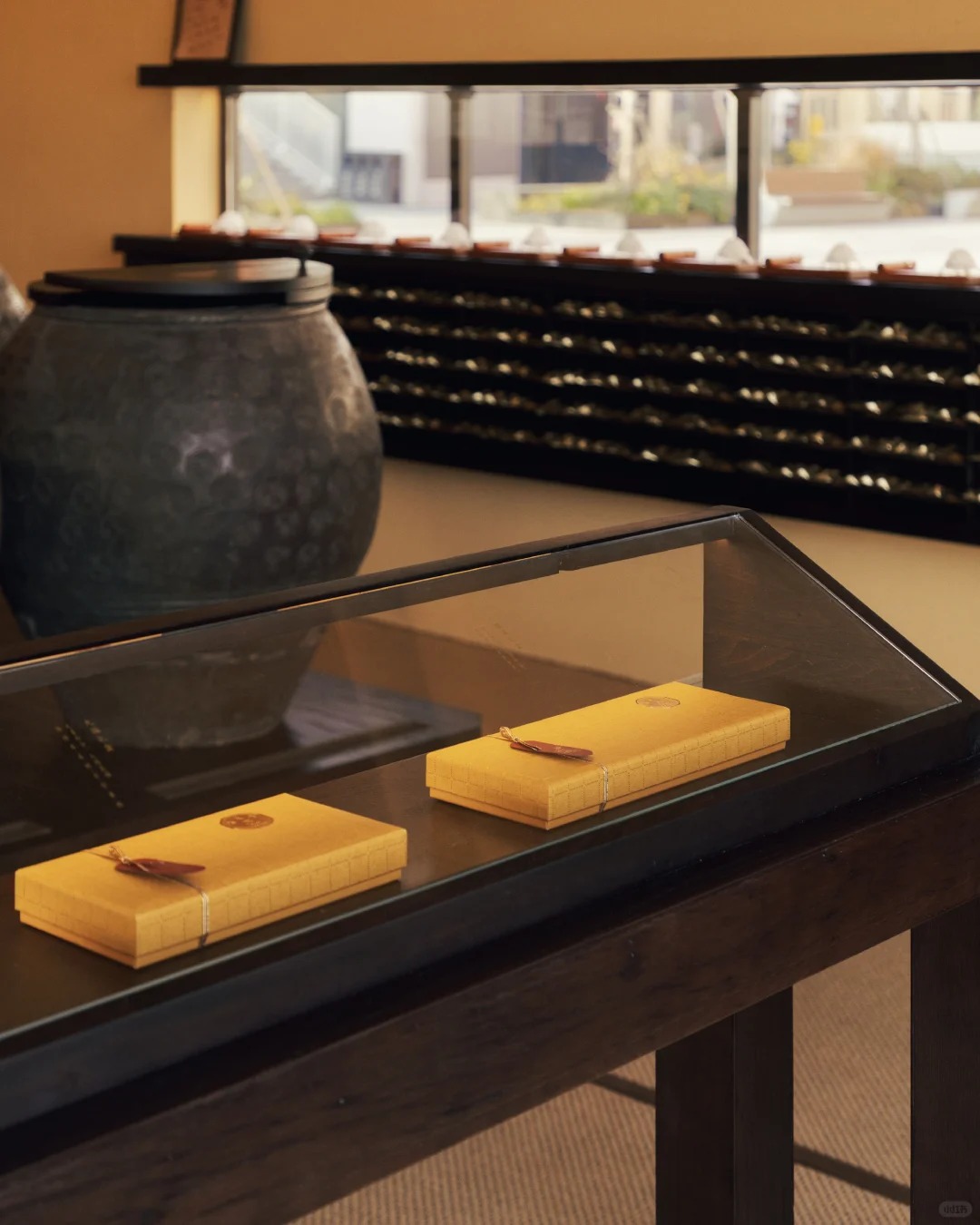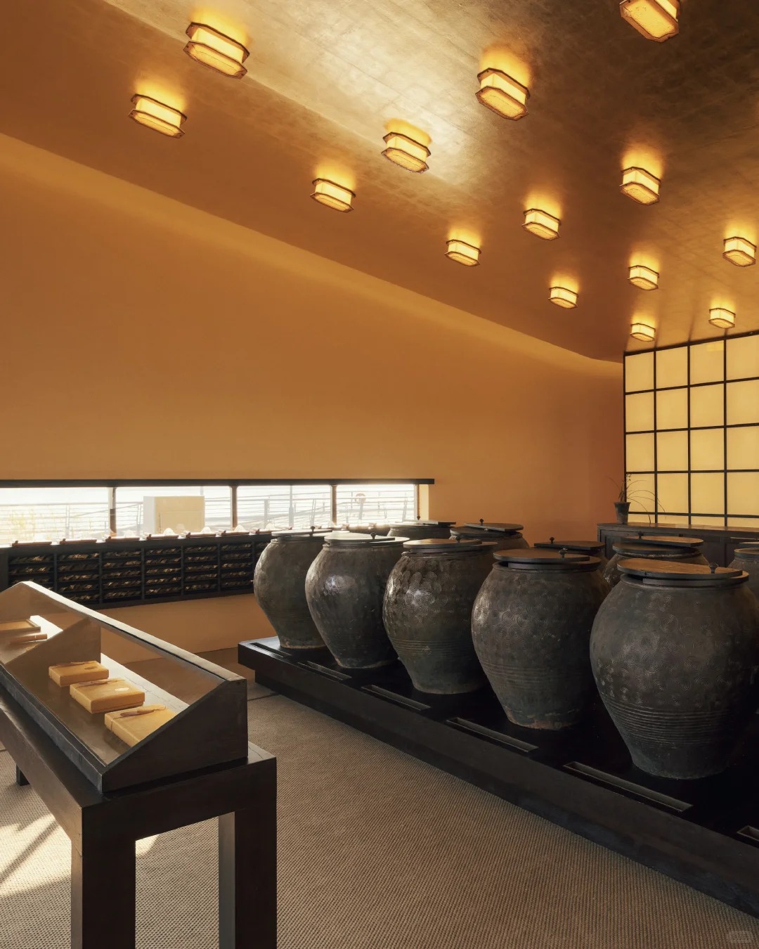 而走进空间内部,最先映入眼帘的是对称陈列的 12 口传统陶缸。作为福建传统制香工艺中的重要储具,陶缸是制香过程中不可或缺的陈化储具。此次龟宝香居将陶缸引入空间之中,一方面为整体增添了更多东方气质,另一方面也承担着香品陈化的实际功能,让访客在氤氲香气中感受千百年制香工艺的时光沉淀,进一步加深品牌与「慢」哲学的深层联结。