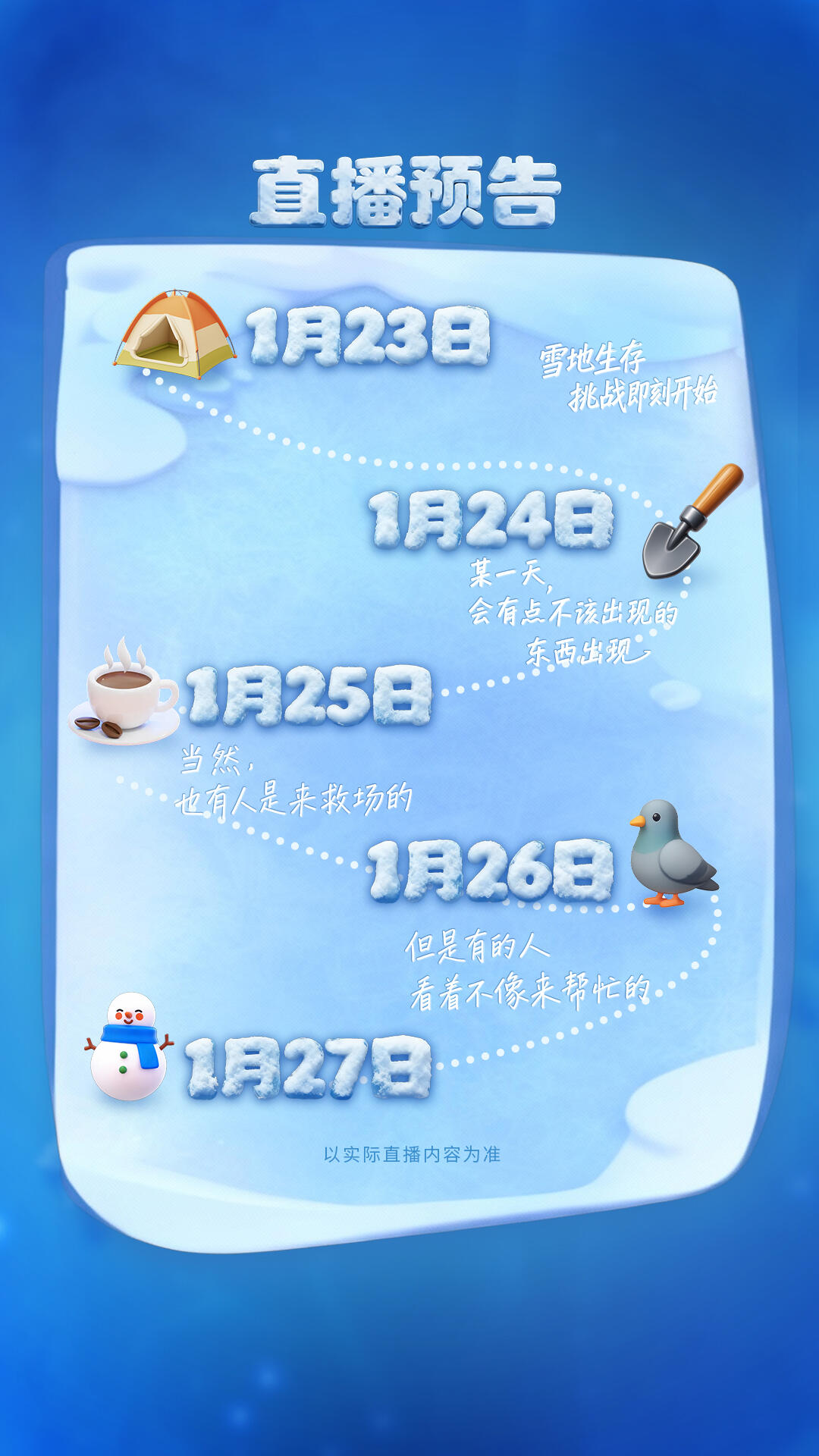 作为冰雪末日生存类游戏,《无尽冬日》的核心设定与直播主题高度契合,品牌也在直播间实现高频露出:直播间整体视觉包装贴合游戏画风;Tim 的服饰、帽子均印有品牌 logo;演播室导演时不时抱着品牌小熊玩偶;Tim 通过念出《无尽冬日》口播延长小木屋使用时长;中国 BOY 化身游戏中的「泰坦巨鸟」前来破坏物资……全方位强化品牌记忆点。