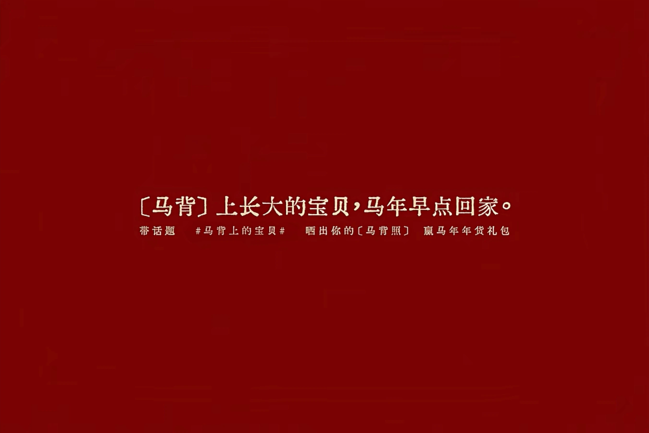 当下,打工人常常自嘲是「牛马」,却容易忘记,自己同样是从「马背」上长大的宝贝。淘宝精准捕捉到这一情绪,抓住「马背」与马年高度契合的意象,通过一幕幕真实的家庭瞬间,自然串联起成长与归乡的情感线索。影片结尾自然融入品牌主张——「马背上长大的宝贝,马年早点回家」,不仅贴合春节「团圆」核心主题,也呼应了人们对亲情与回家的深切期待。