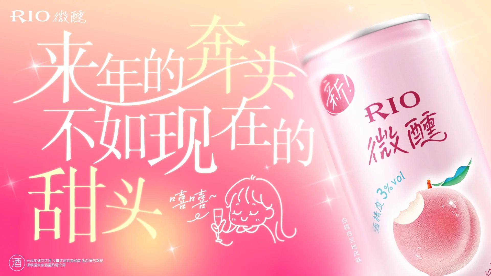 针对百威「马年有奔头」的 slogan,RIO 则回应「来年的奔头,不如现在的甜头」,不仅回绝了「画饼式」的营销,也完美回应当代年轻人及时享乐的情绪。