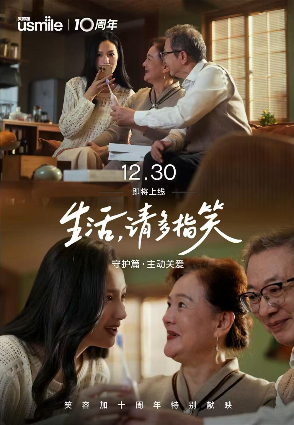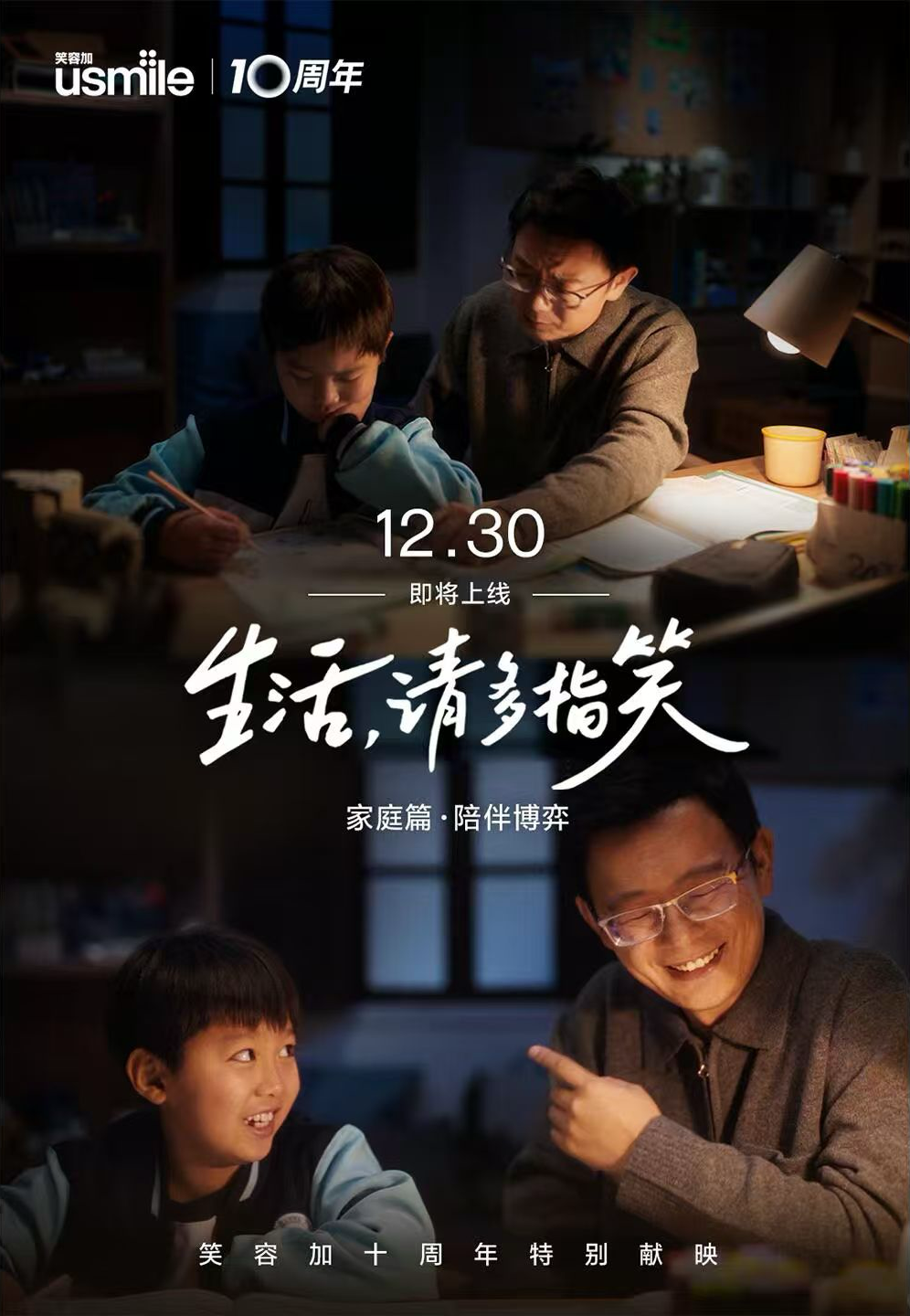 短片取材于用户真实故事,以牙齿的集体记忆为线索,串联人生各个阶段的「笑容路标」时刻:从新手父母见证宝宝第一颗乳牙萌出的幸福,到闺蜜相聚时心照不宣的默契微笑;从辅导作业时僵持后相视一笑的破冰,到成年人受挫后自我鼓舞的淡然一笑,既展现了开怀大笑、傻笑等纯粹的喜悦,也包容了苦笑、讪笑等真实的情绪表达,让笑容成为串联人生的情感纽带。片中,usmile 以隐性的「陪伴者」和「支持者」出现,将「十年陪伴」的抽象概念转化为可触摸的集体情感记忆。