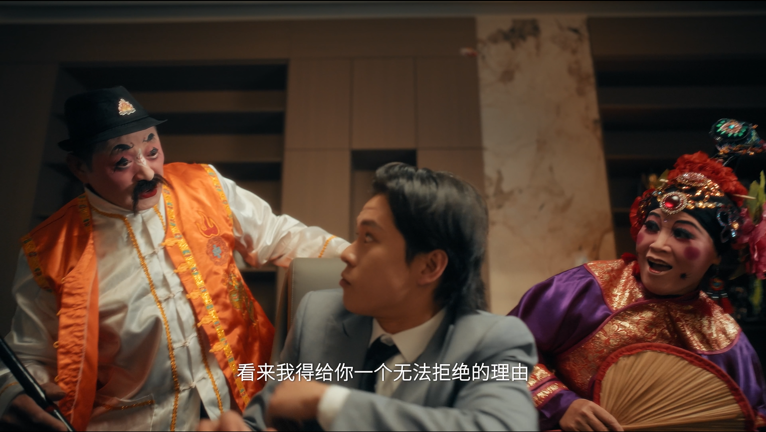 短片中每个登场人物,都代表着泉州:关公是泉州香火鼎盛的精神图腾,此刻化身为打工人的「正义守护神」;姜母鸭是深入骨髓的闽南古早味,成为唤醒生活热爱的道具;簪花围、火鼎公婆等非遗底蕴,则被构建为比工作 KPI 更亟需年轻人了解的「传承使命」。