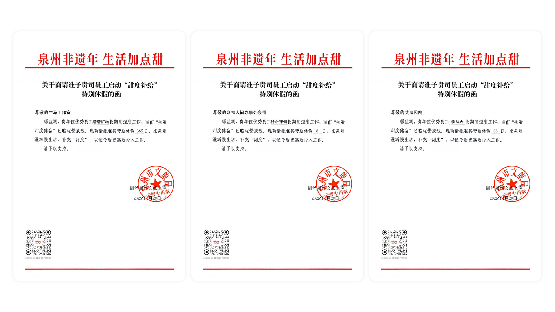 除了在短片中为打工人使出浑身解数求「批个假吧」,泉州文旅还随片附赠了真·官方请假函——网友们输入单位、名字、请假天数,就一键生成红头文件格式的请假函,放大了「帮请假」的正式感。