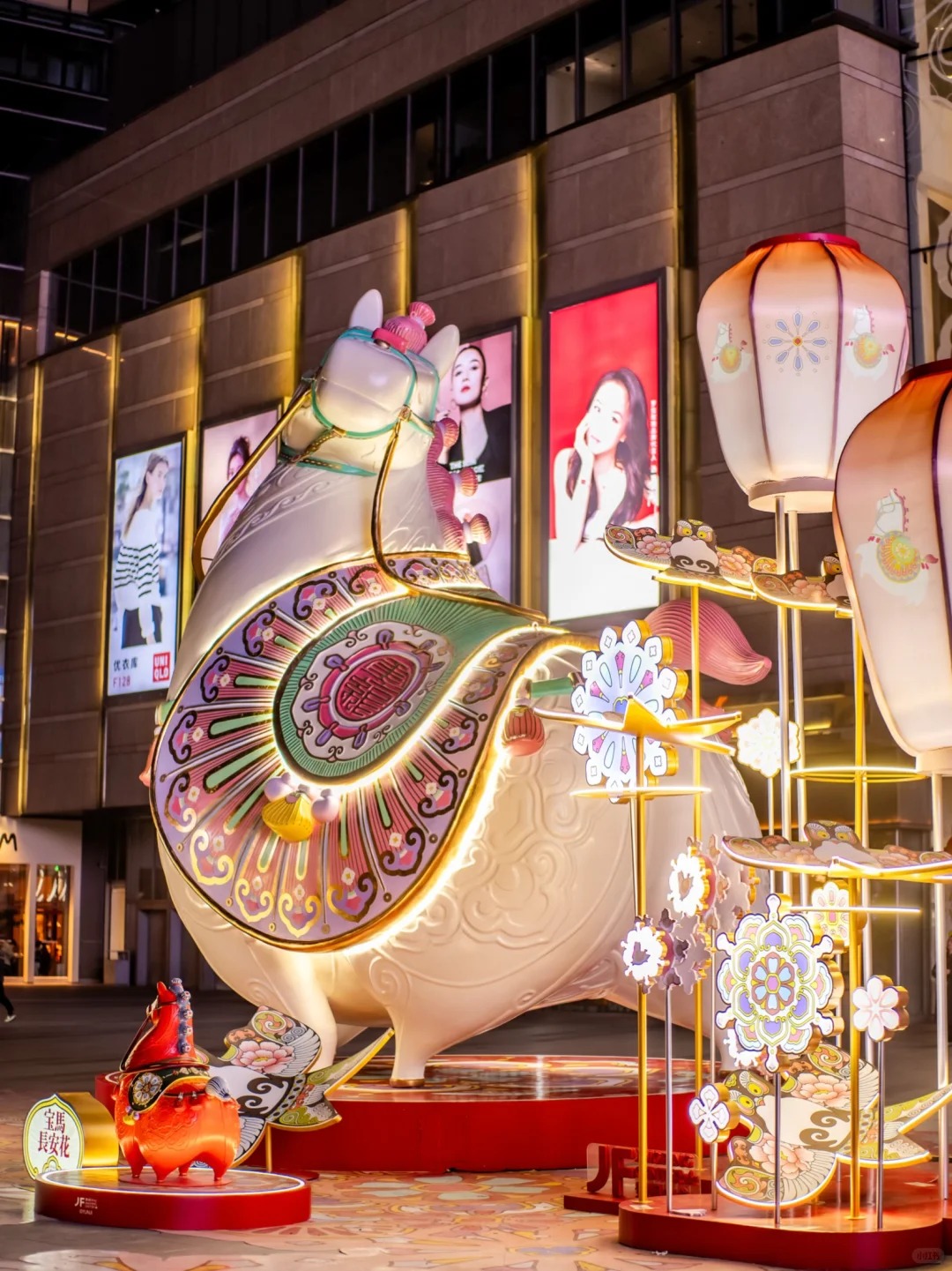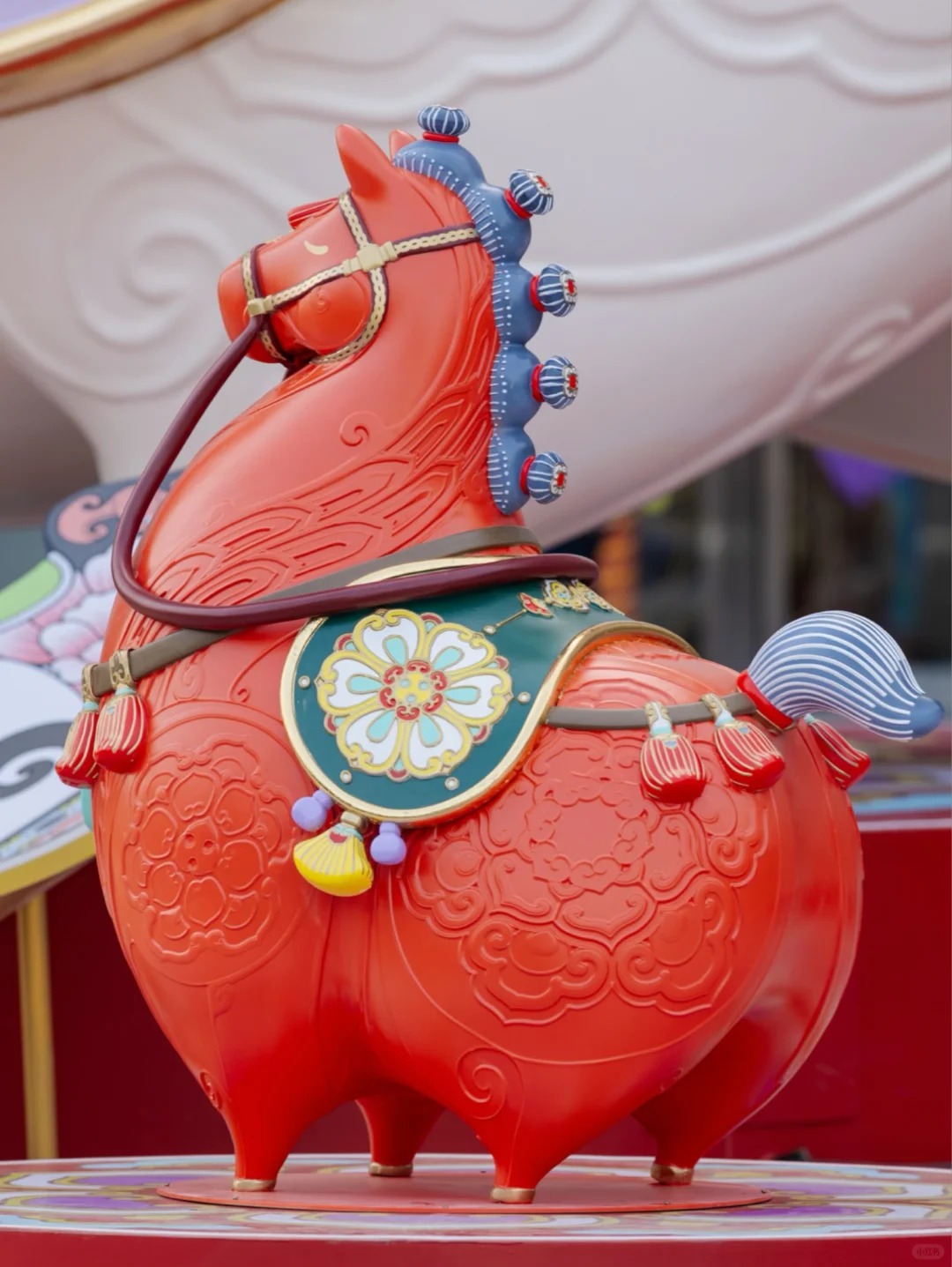 不同于一般追求矫健、骨感的骏马造型,现场 7.6m 的超大白玉马以珠圆玉润的 duangduang 身形配上傲娇小表情,不仅呼应了展陈主题,更精准拿捏「我的身材很曼妙」这一网络热梗,为新春氛围更添了一份松弛感。入夜后,展区还会一键切换灯会模式,让人梦回唐代花园。