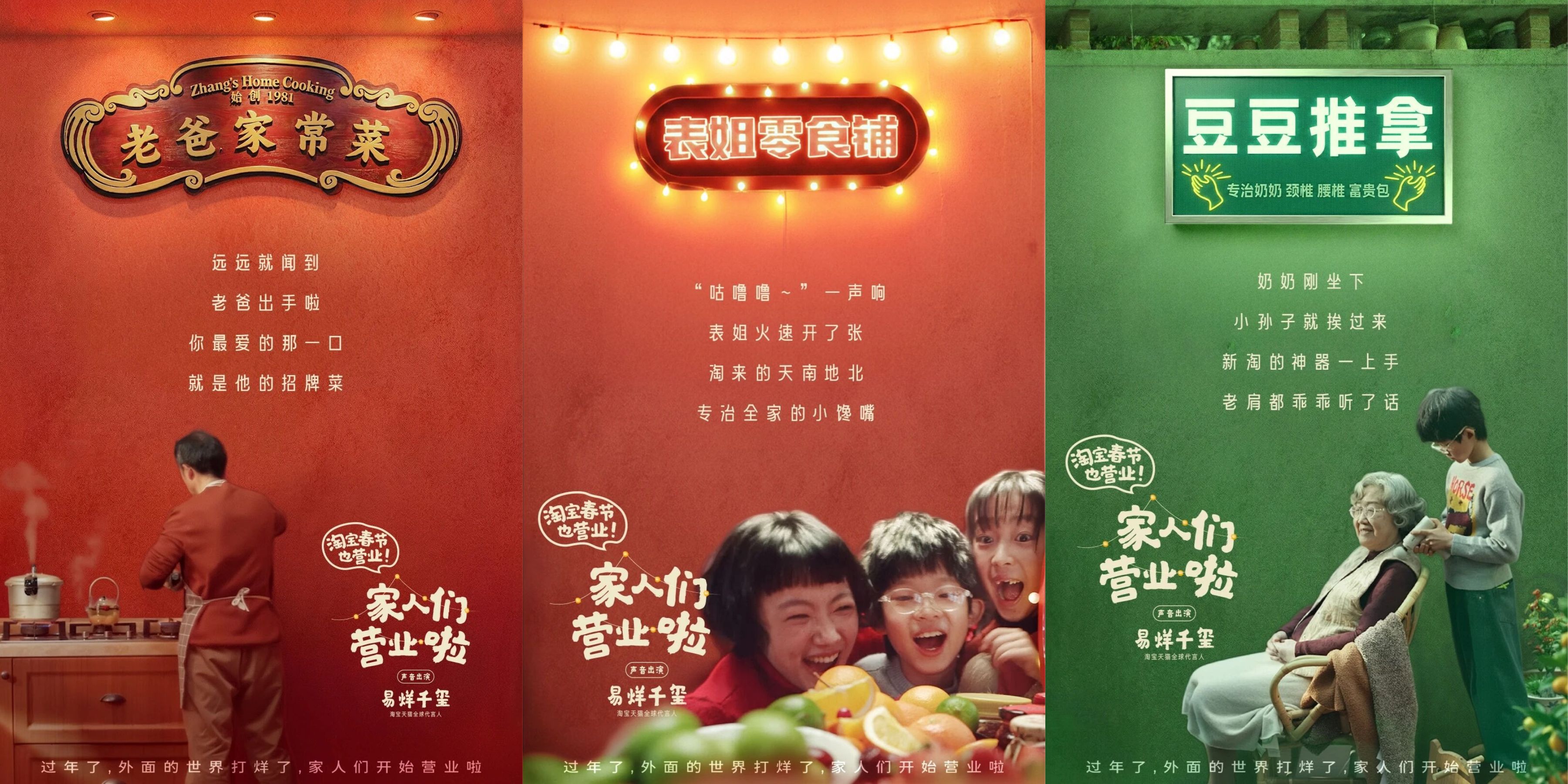结尾又通过 UGC 内容回归淘宝春节业务场景,将「家人营业」的温情自然延伸至平台的年货、外卖、旅行等服务,让每一件从淘宝淘来的「宝贝」,都成为家人传递爱意的载体,实现情感与品牌服务的联结。让大众在感受家庭温情的同时,感知淘宝春节期间的贴心守候。