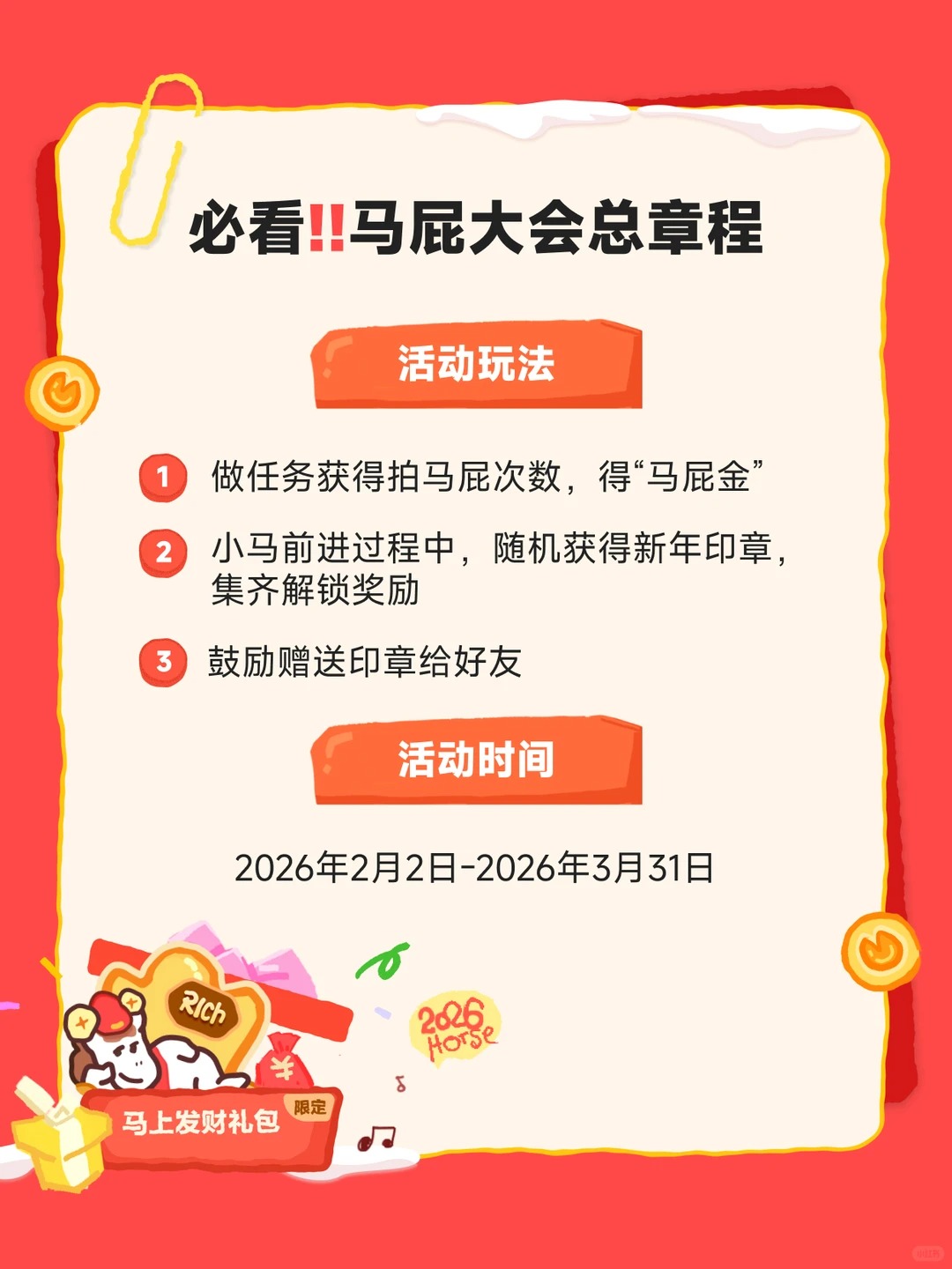 本次活动以「过马年,拍马屁,赚马屁金」「拍拍马屁,万事顺意」为口号,给「拍马屁」赋予全新趣味洞察,鼓励用户真诚夸赞他人的同时,也大方肯定自己,在辛苦一年后的春节,以真挚的喝彩与欢呼为彼此献上最暖心的新年祝福。