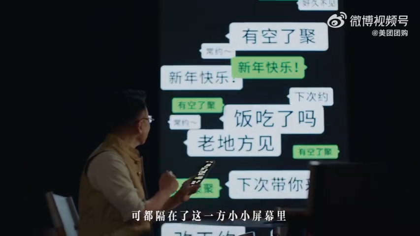 如今我们习惯于线上沟通的便捷,屏幕让聊天更方便了,但彼此的感情却变薄了,而聚,会化解很多东西——误会不用猜测,当场就能聊开;情绪不用硬扛,对方一个拥抱、一个眼神都能接住;所有悬着的牵挂、拧着的冲突、生着的隔阂、飘着的祝福……相聚的时候,总能面对面找到一个个「解法」。屏幕改变了中国人的聊天,透过屏幕里的各种「一万句」,美团团购想要呼吁大家:一聚,胜万句。