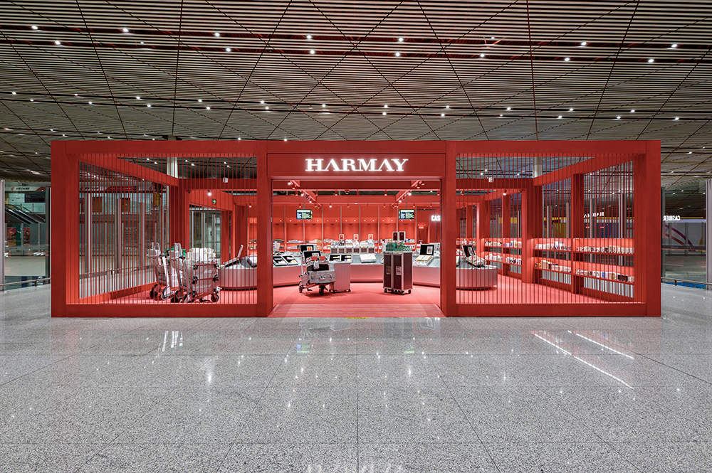 门店设计深度融合机场场景与复古未来主义。灵感源于航空黄金时代的机舱美学,空间以浓烈的红色与奢华红丝绒为主视觉,营造出内敛而戏剧性的沉浸氛围。行李传送带被创新改造为产品展示台,让选购过程宛如参与一场精致的登机仪式。点缀其间的行李推车、复古手提箱,与充满科技感的流线灯光交织,一共叙写着关于旅行与未来的故事。