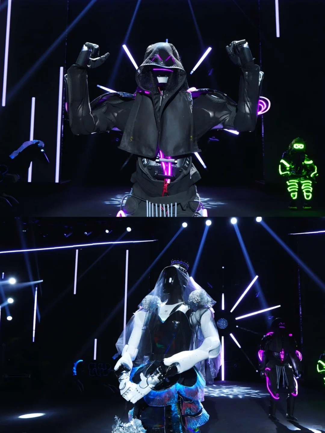 台下观众席由 200 余台造型各异的机器人组成,包含系围巾的「东北风机器人」、百事涂装机甲等创意形象,能实时响应节目鼓掌、欢呼甚至模拟落泪,营造「钢铁森林」式未来场景。