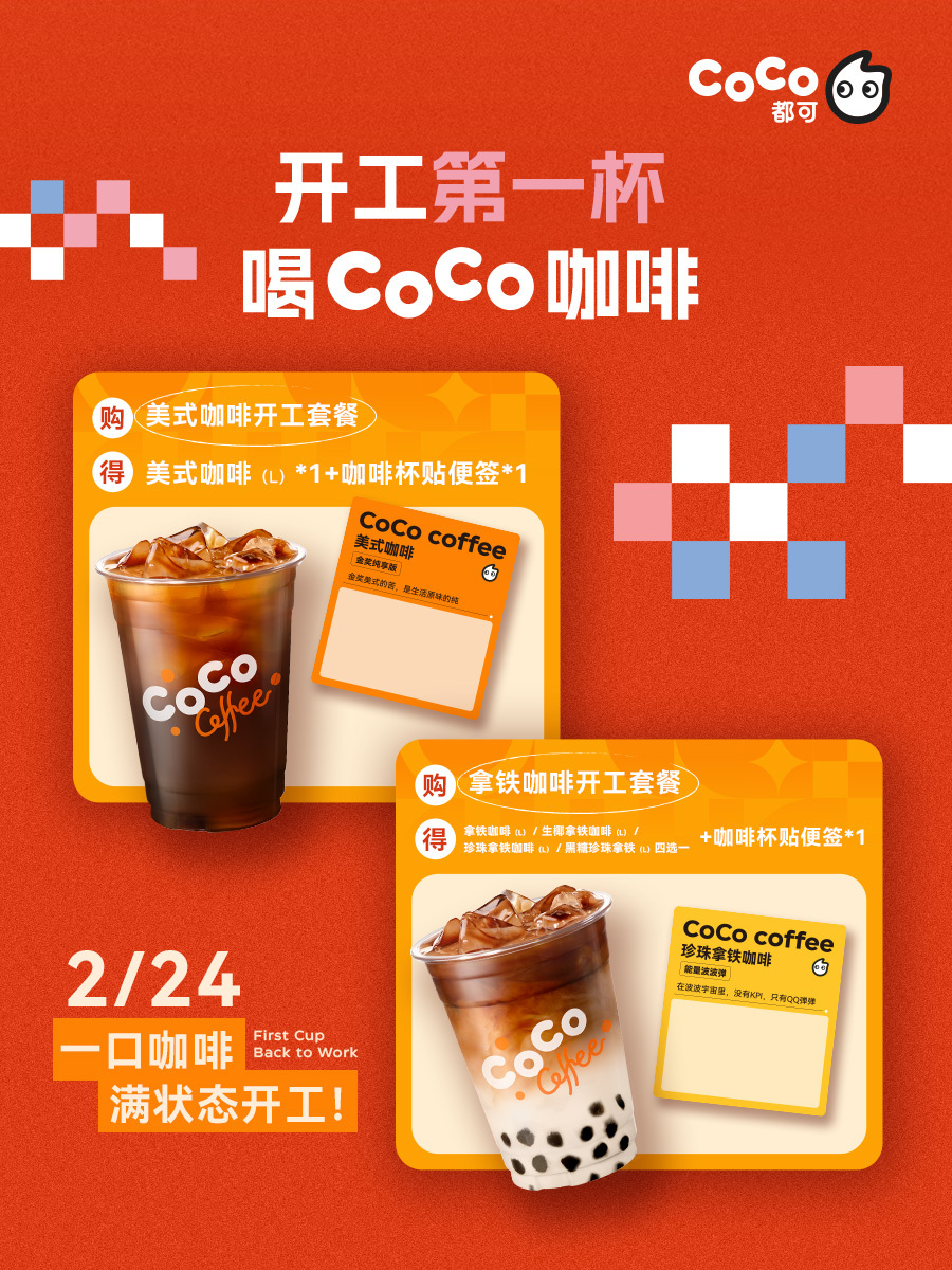 开工第一天,主打一个「身在工位,心在远方」。为了帮大家缓解复工焦虑、找回工作节奏,CoCo 都可暖心推出「开工第一杯咖啡」主题活动,用一杯咖啡的仪式感,陪大家慢慢进入状态。