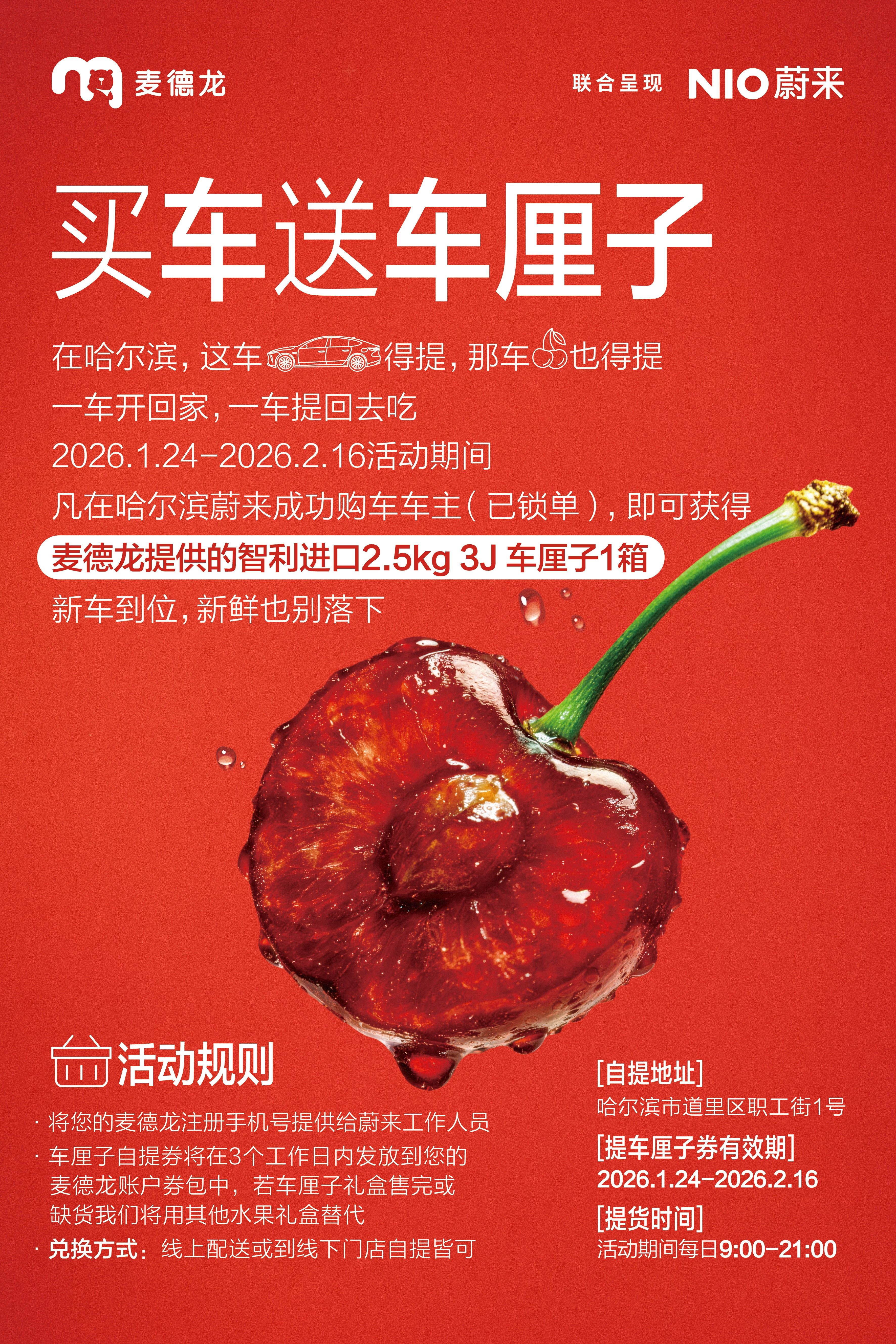 除了卖场内的各类互动装置,麦德龙还联合本地车企发起了跨界活动,让「提车」的谐音梗有了硬核的现实落点。活动期间,凡是在哈尔滨成功订购新车的「新车主」,都能获赠一箱麦德龙提供的一箱车厘子,新车到位的喜悦被这箱高端年货「新鲜加码」。