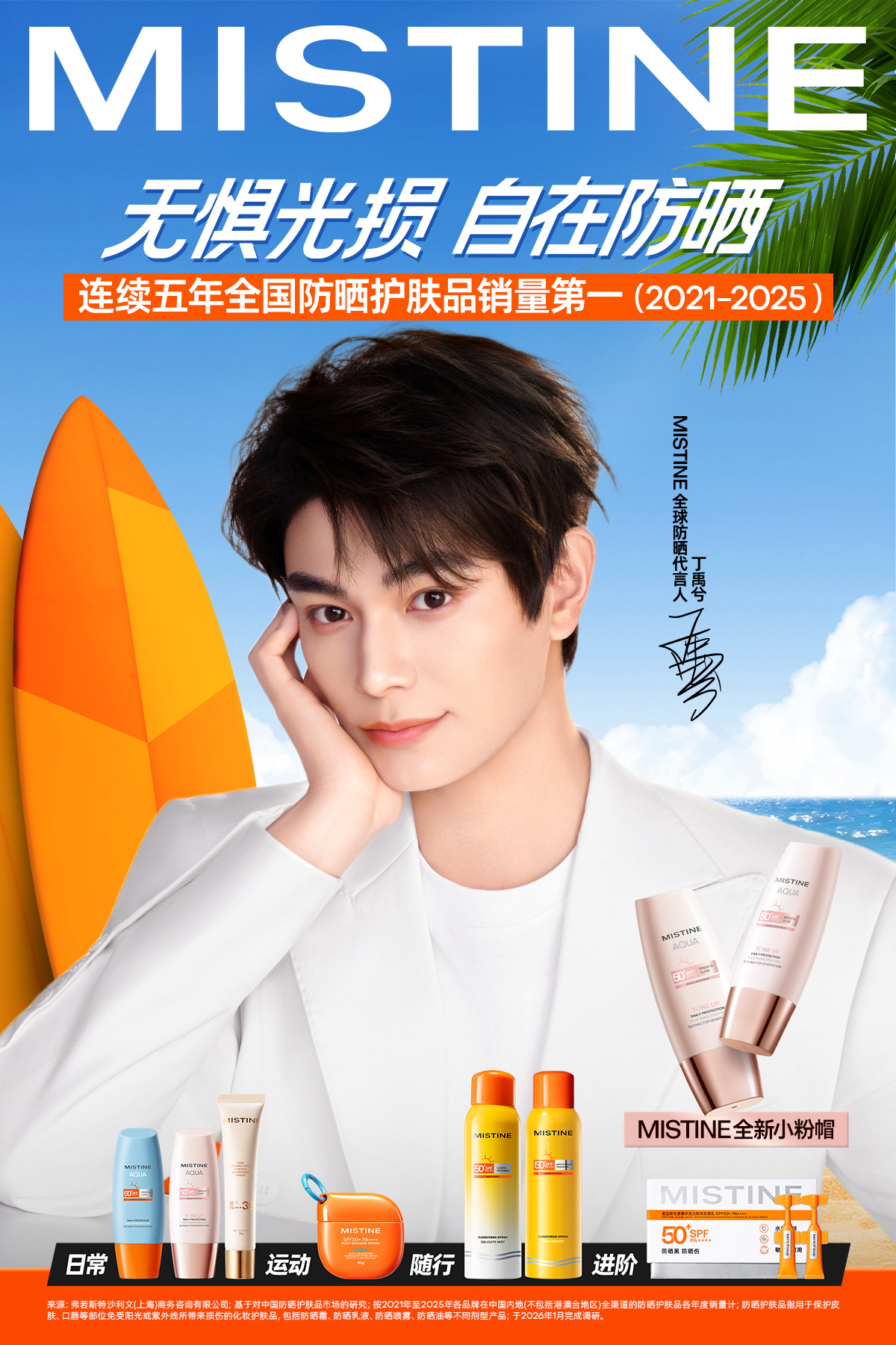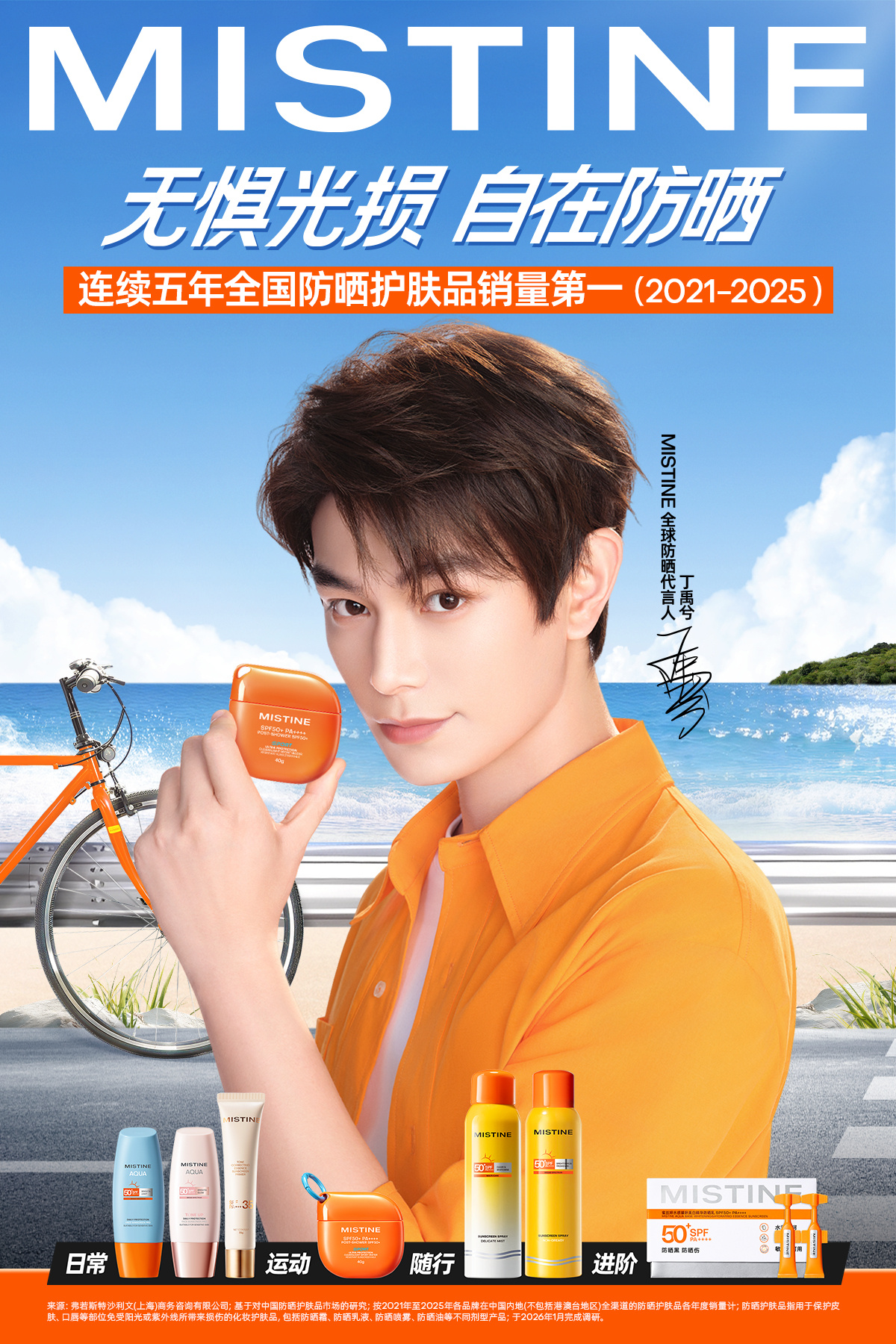 MISTINE 官宣丁禹兮为全球防晒代言人,共同开启全场景 AI 抗光损防晒新纪元。品牌以覆盖全球 600+ 地标大屏、无人机应援及专属联名礼盒的资源配置,掀起了一场「无惧光损,自在防晒」的夏日防晒热潮。