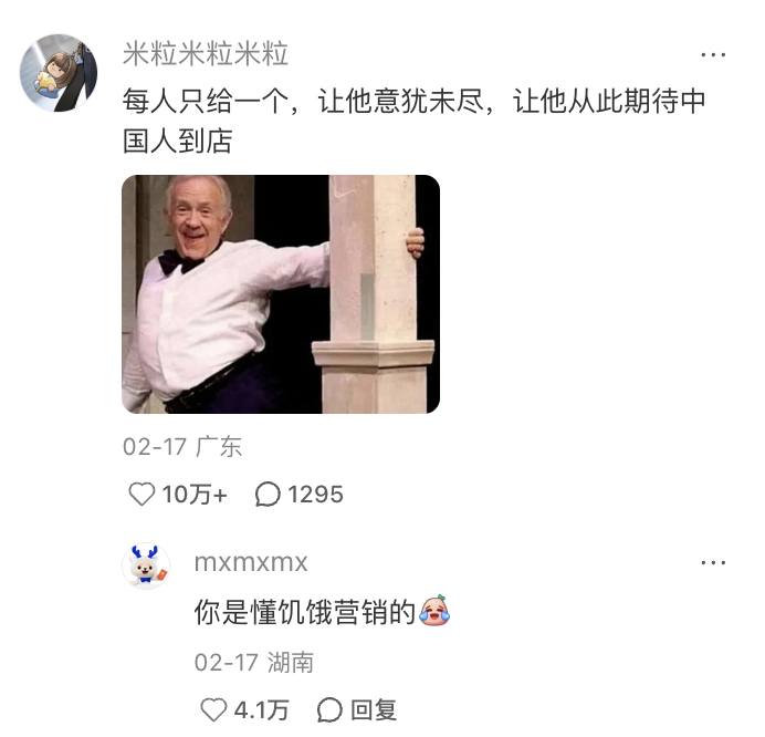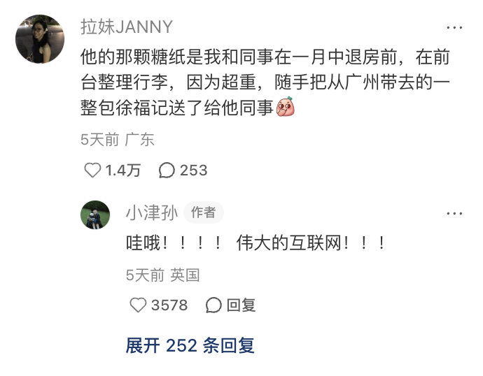 事件发酵后,身在米兰的留学生、游客纷纷专程前往酒店送糖。更有网友深谙「饥饿营销」之道,默契约定「每人只送一个」,只为延续小哥对这份甜蜜的期待。