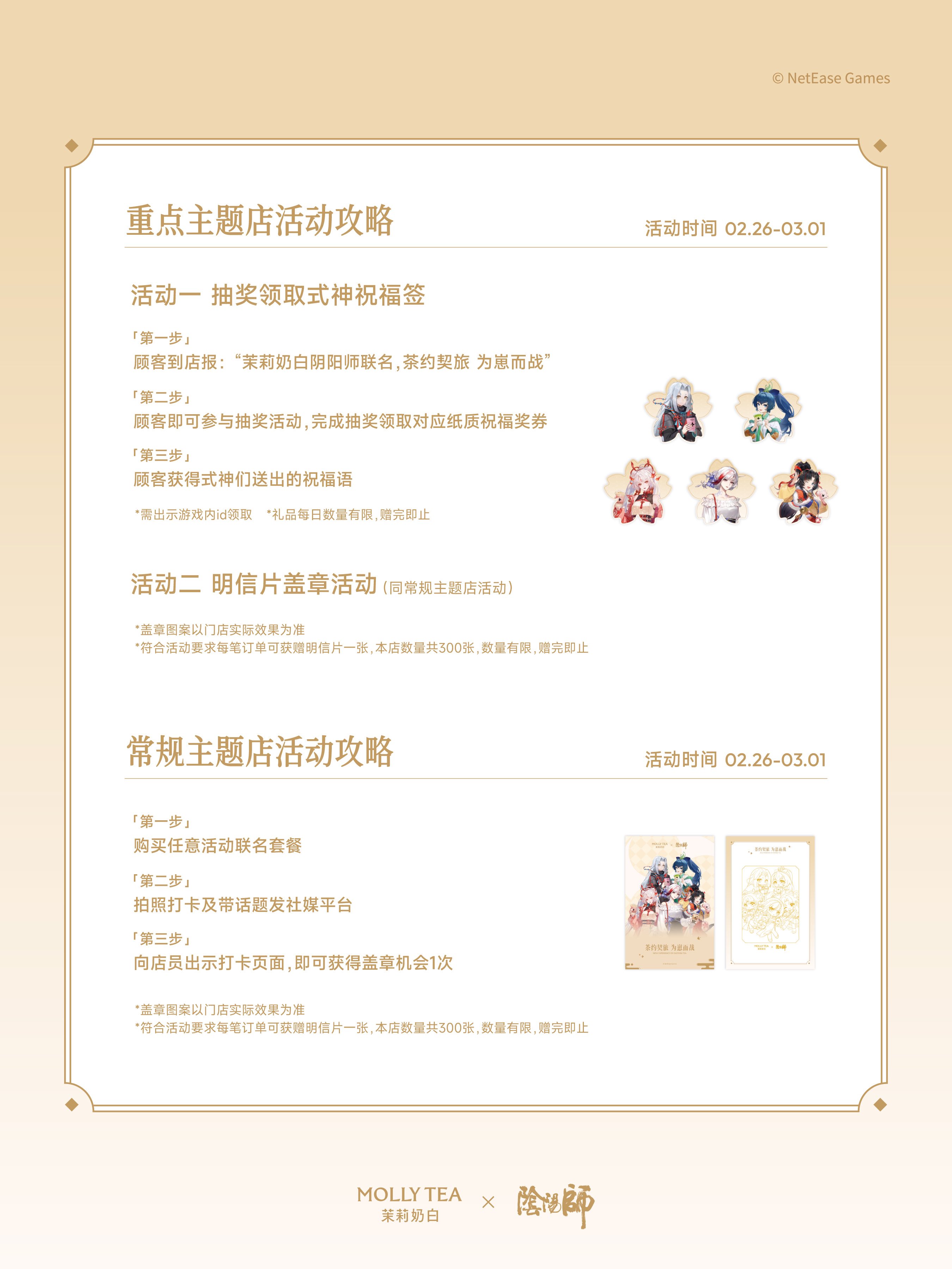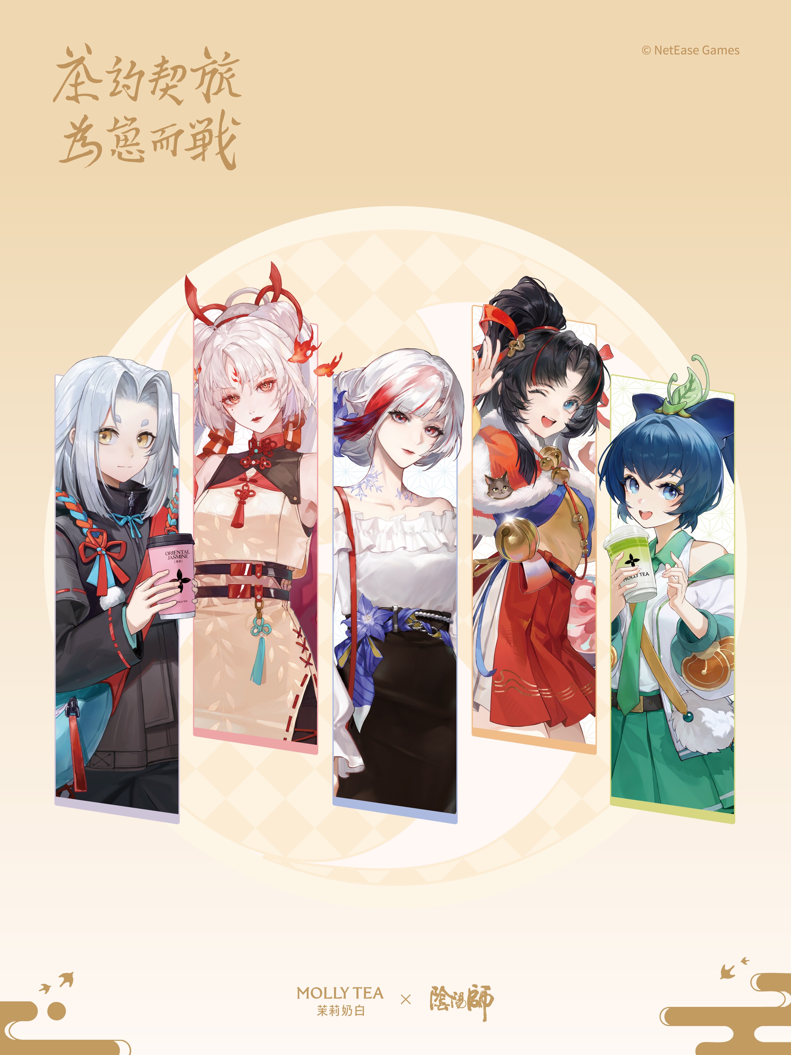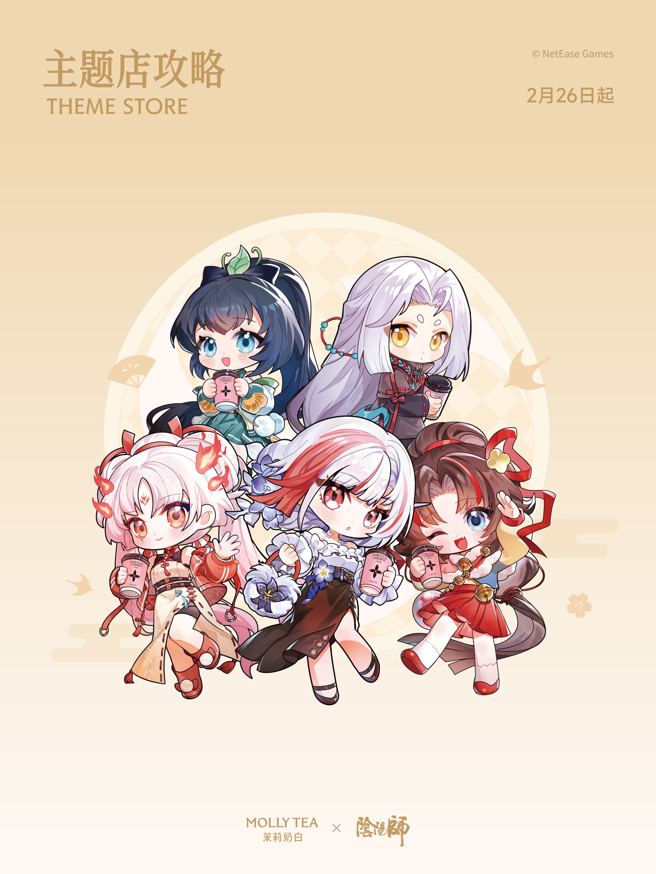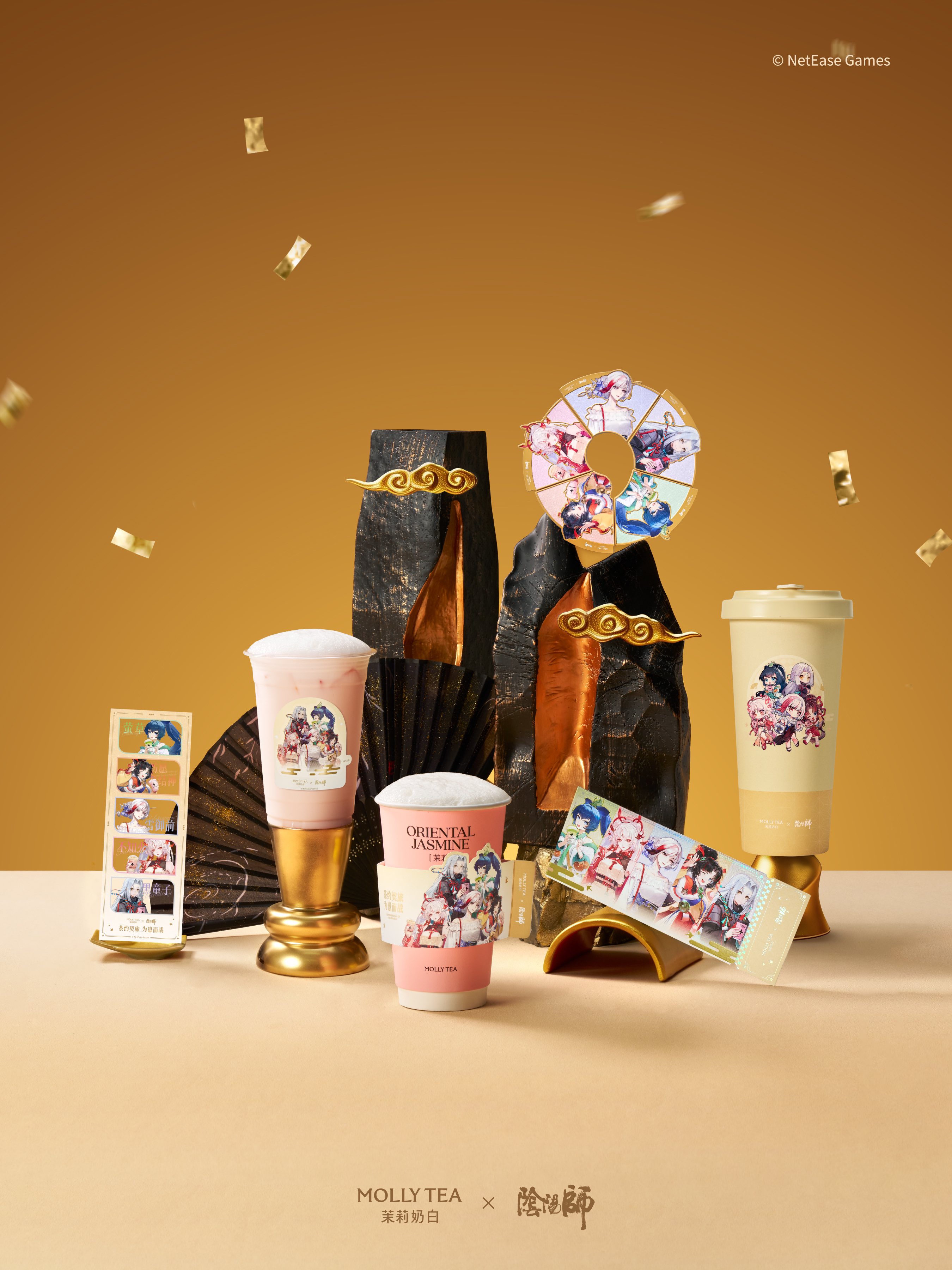 联动产品方面,共推出五款限定饮品,由游戏中高人气角色手持呈现,涵盖茉莉奶白「必喝摩登茶系列」及新年主推新品,包括当季主推的香草慕斯金骏眉、茉莉奶油芭乐,以及王牌单品针王苹果、茉莉奶白及抹茶白兰。此外还有联名镭射票、书签、冰箱贴等丰富周边,用户购买指定套餐即可获得。为强化用户体验,茉莉奶白还在活动期间打造多家重点主题门店,通过还原《阴阳师》标志性和风视觉元素,营造沉浸式打卡空间。