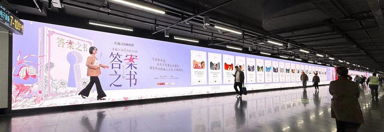 在线下与线上触点上,天猫也进一步延展了《答案之书》的表达。 一方面,品牌联动杨天真播客,围绕「当外界定义失效,我们如何定义自己」展开讨论;另一方面,又在上海、杭州等地投放全景式「答案之书」装置,让路人通过提问、选数的方式获得专属答案,实现沉浸式情感互动。