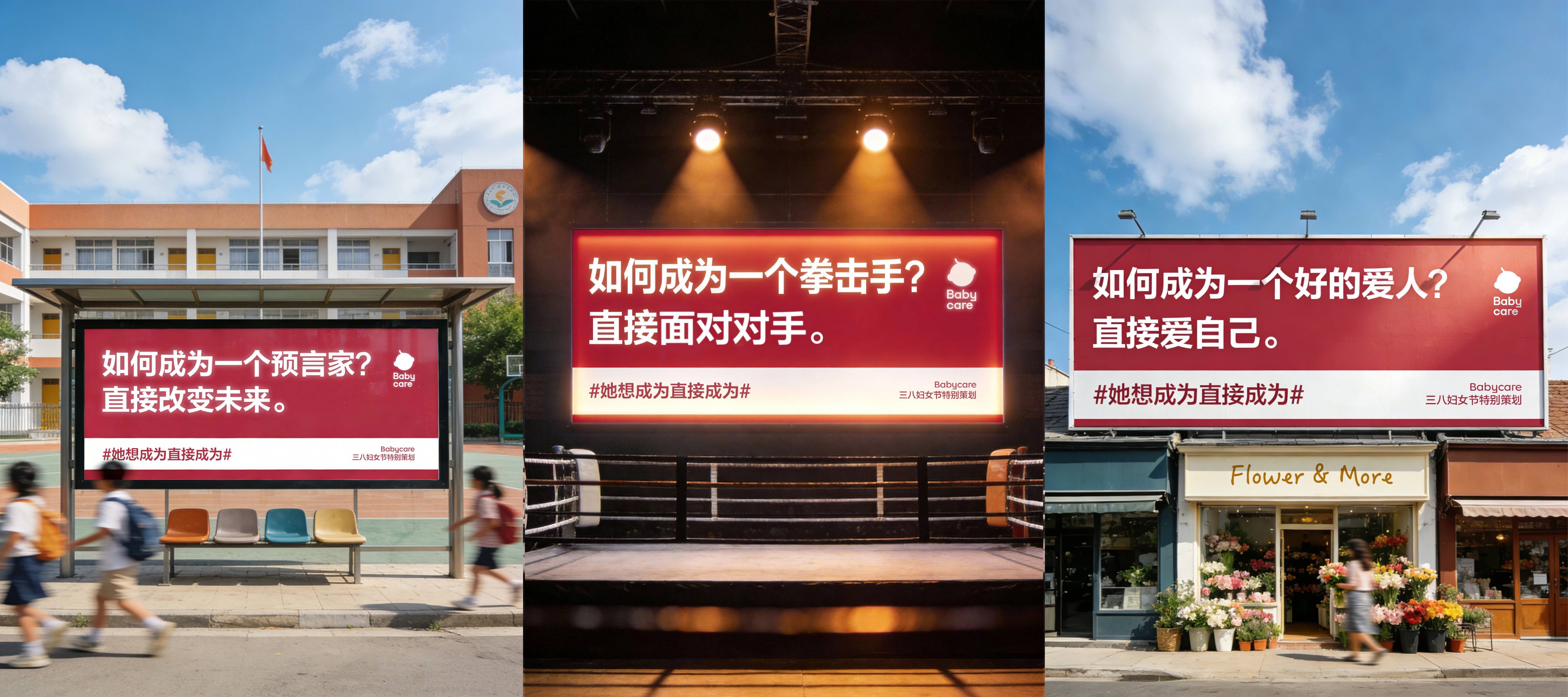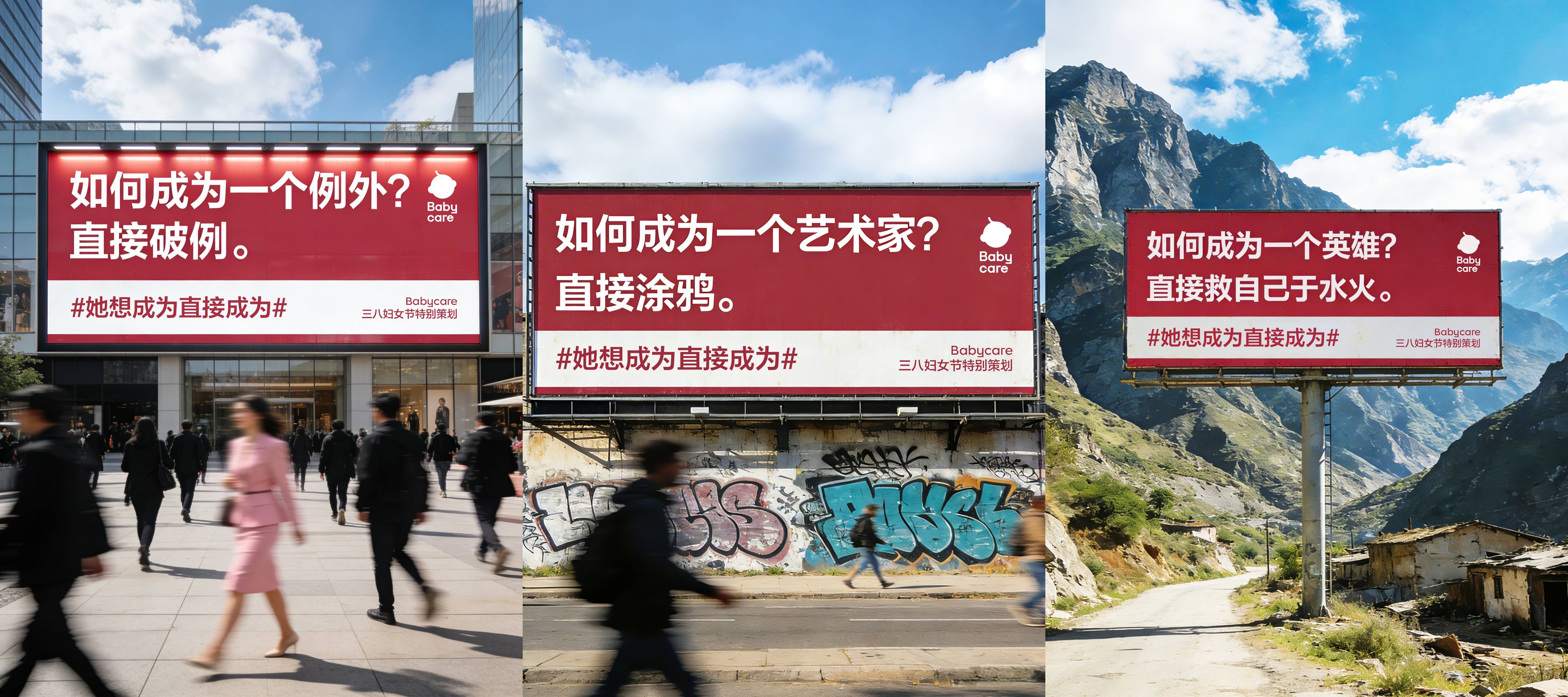 在发布的广告片中,Babycare 呈现了一系列没有听话「乖乖等」但活出别样人生的女性模样——面对家暴勇敢站出来面对对手的「拳手」、无视身体缺陷奏出优雅旋律的「破例者」.....其中一段由 AI 生成的动画也再现了从古至今优秀女性的事迹,居里夫人没有等实验室为她敞开大门,自己搭建简陋棚屋提炼镭;马拉拉没有等枪声停歇才发声,在子弹飞来前就已高举教育的权利;谷爱凌没有等对女性运动偏见消失,直接腾空翻转,用金牌砸碎天花板。